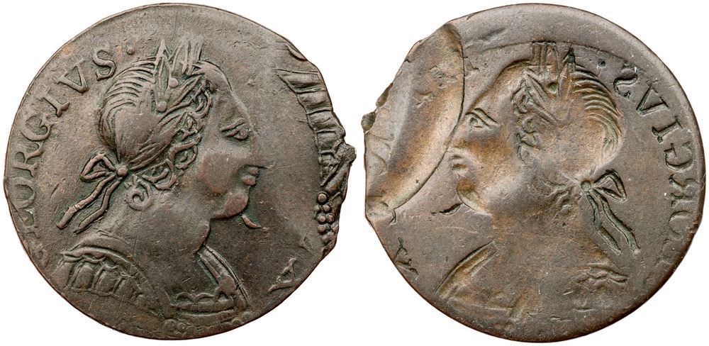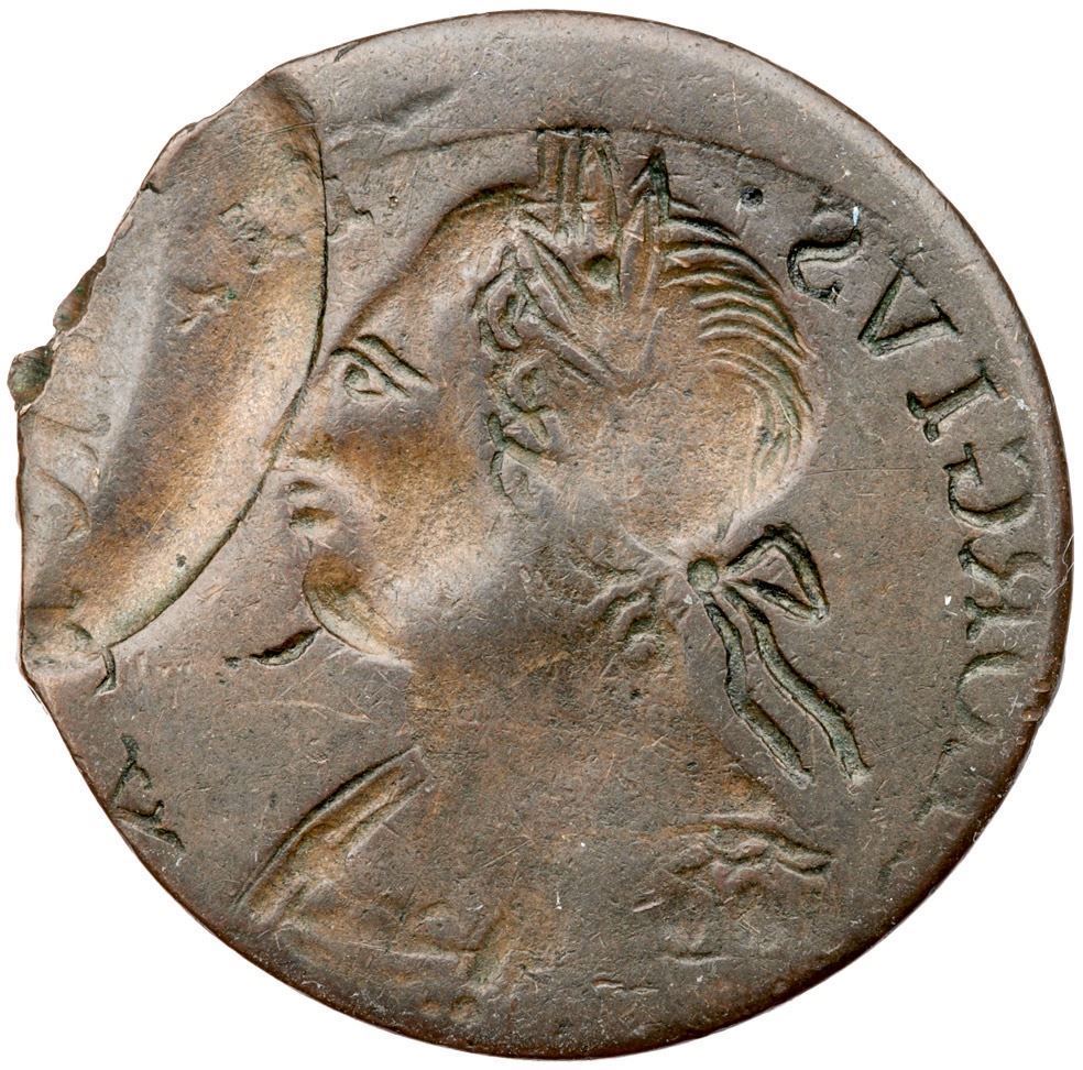 Choice glossy chocolate brown. Smooth and very attractive. A centered obverse brockage strike that was struck with the obverse die a second time 75% off center leaving only the Mailed Bust truncation on the planchet. A beautiful example of this type of multiple mint error. See page 66 in the 2023 "Redbook." Weight 88.1 grains.