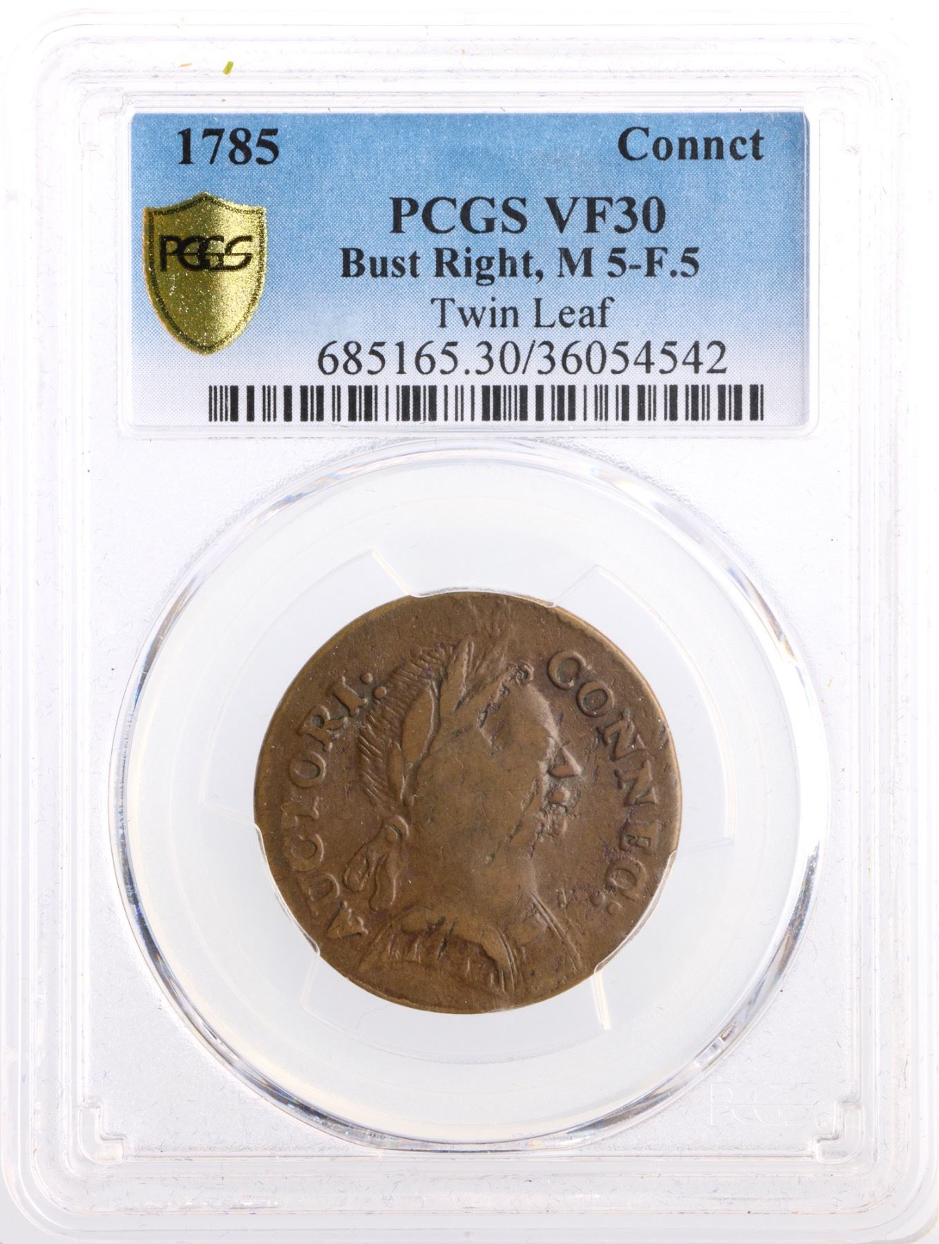1785 Connecticut Miller 5-F.5 R4 MBR, PCGS graded VF30