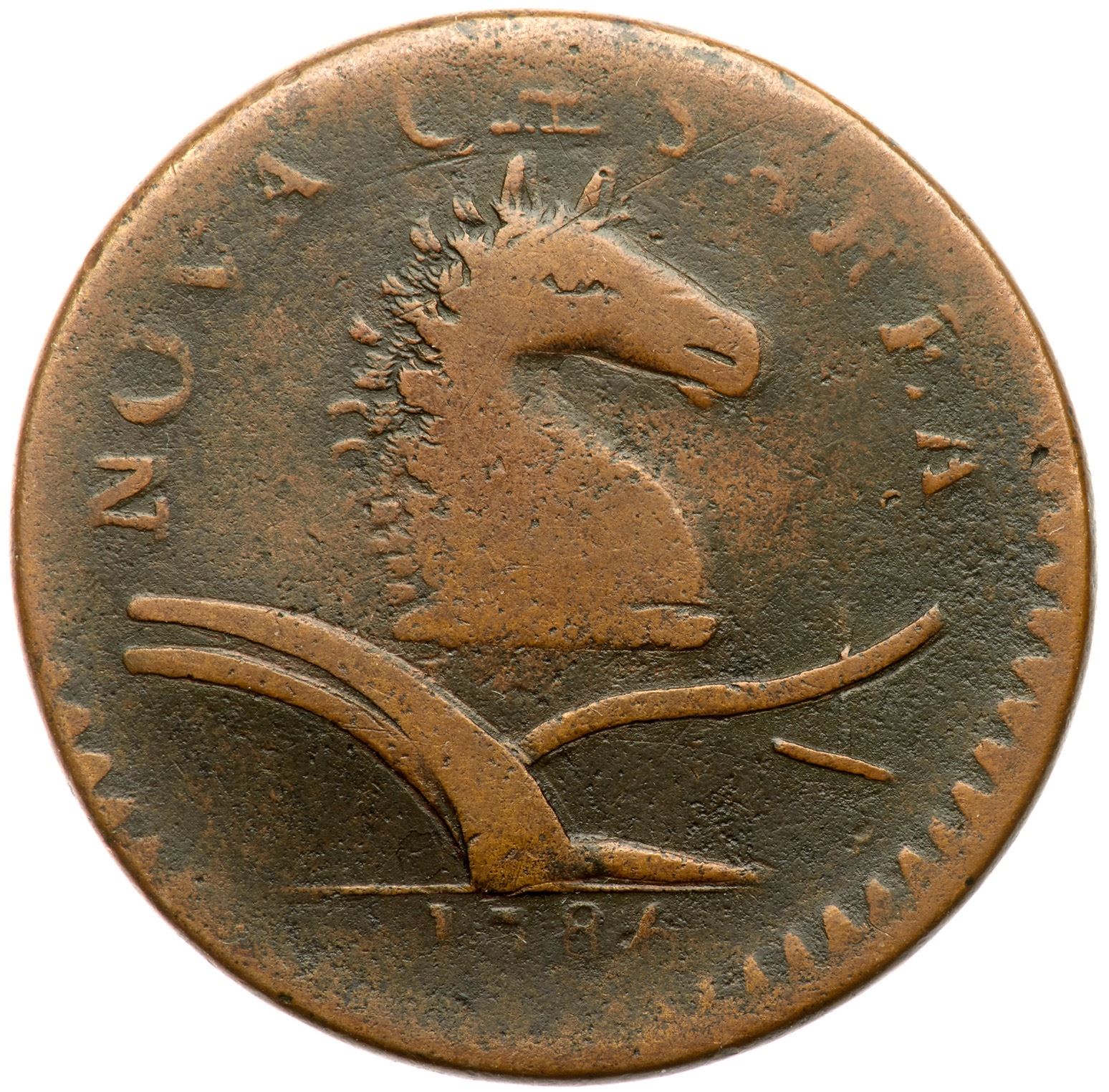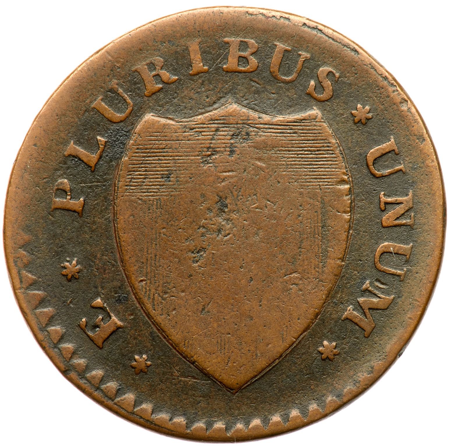 Glossy chocolate brown with lighter brown toning on the devices. The two-tone appearance accents the devices and the eye appeal of this piece is excellent. The surfaces look perfectly smooth to the unaided eye but a glass reveals extremely fine roughness in the fields and protected areas. No verdigris or notable marks. A very nice "No Coulter" New Jersey for the grade. Weight 136.3 grains.