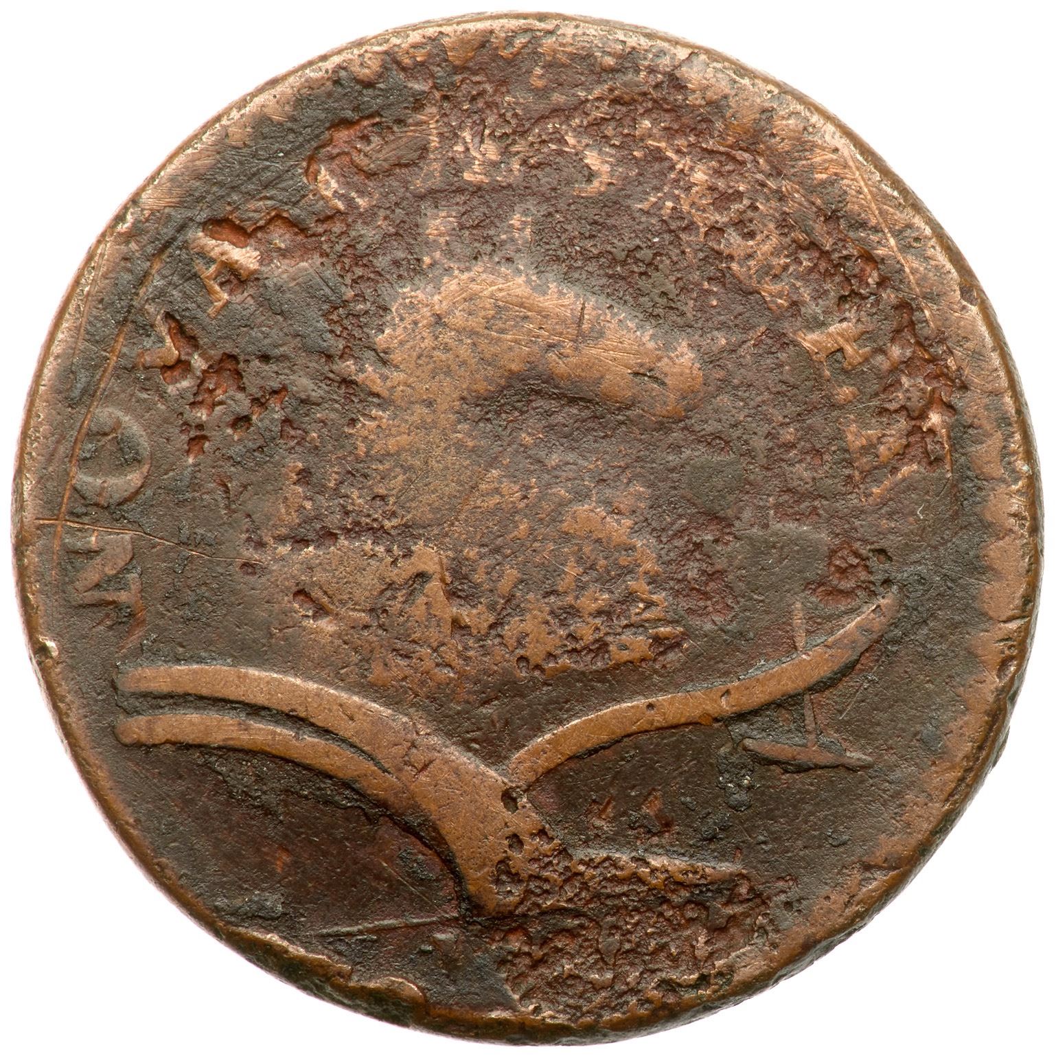 Sharpness near VG10 but there are patches of ugly pitting on both sides including one that obliterates the 786 in the date. The 1 in the date and the "No Coulter" feature are clear. The legends are readable (although some of the letters are weakened by the corrosion). The only notable contact marks are a few dull rim nicks. Chocolate brown with lighter brown on the devices. Weight 146.3 grains