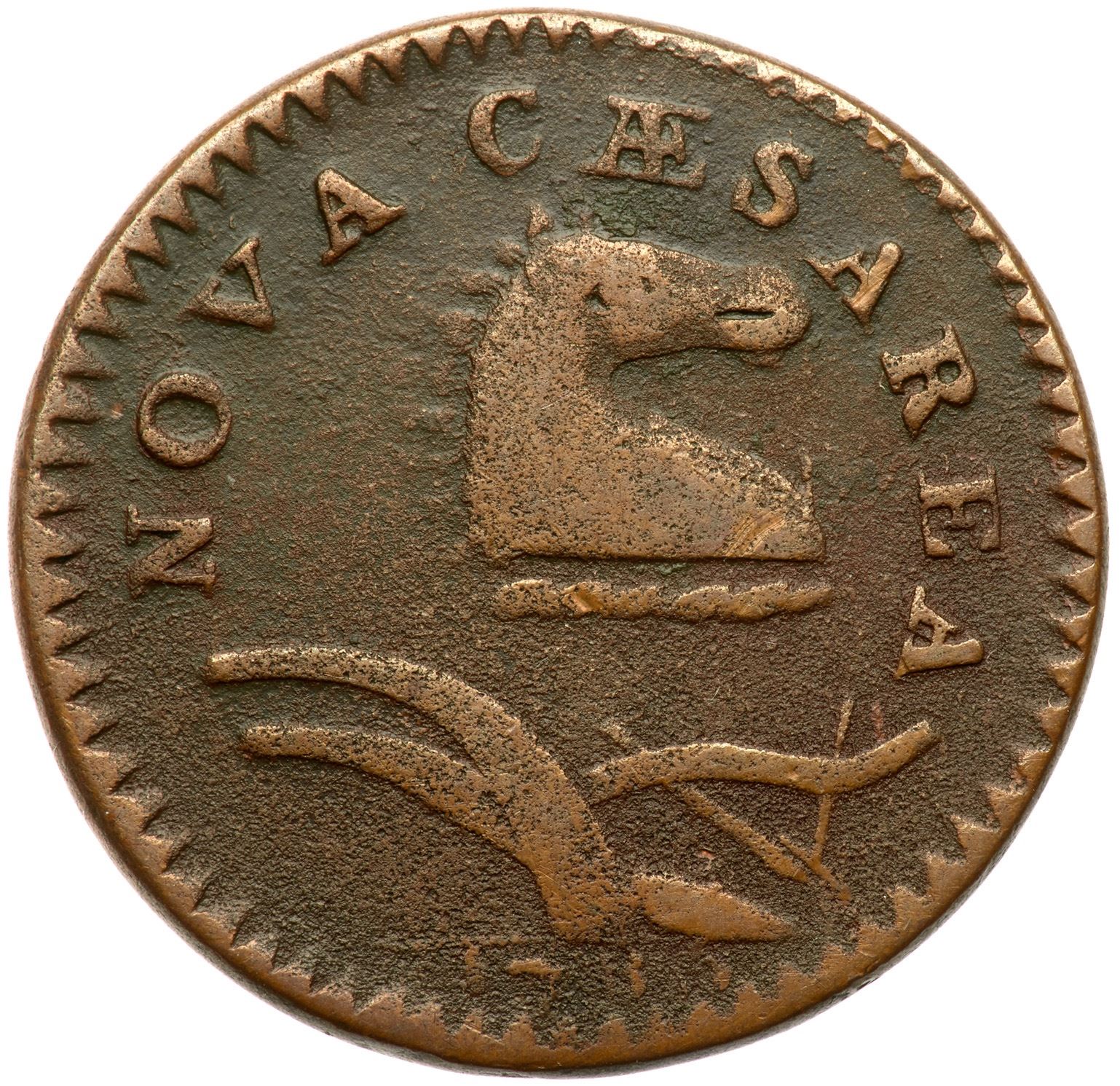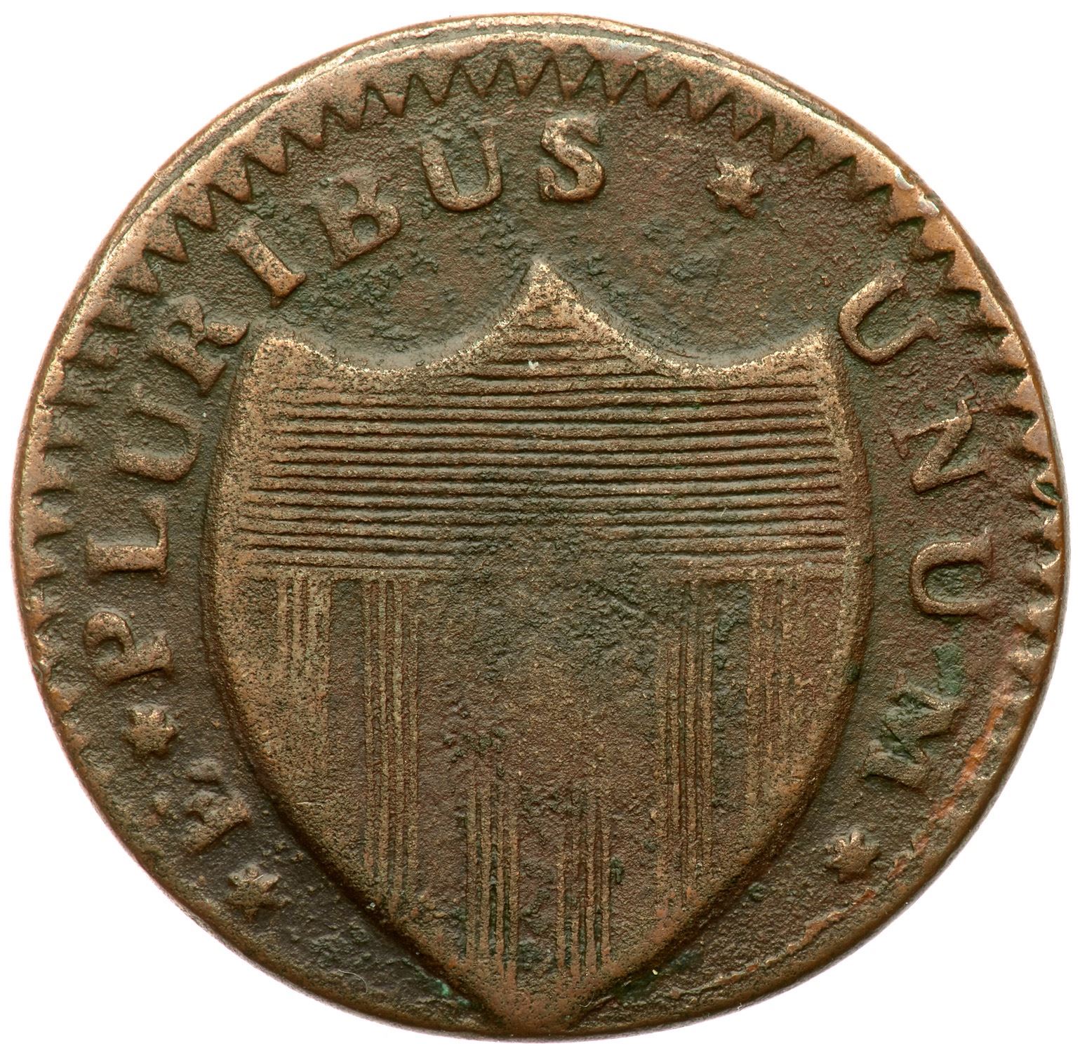 Sharpness VF20 but a bit dull thanks to microscopic granularity that covers the fields and protected areas on both sides. Traces of very shallow verdigris show in protected areas, mostly on the reverse. Dark olive brown and chocolate with lighter brown on the devices. Struck with the reverse misaligned slightly to the bottom. The date was delicately cut into the die but it is readable; the legends are strong. Weight 136.7 grains.