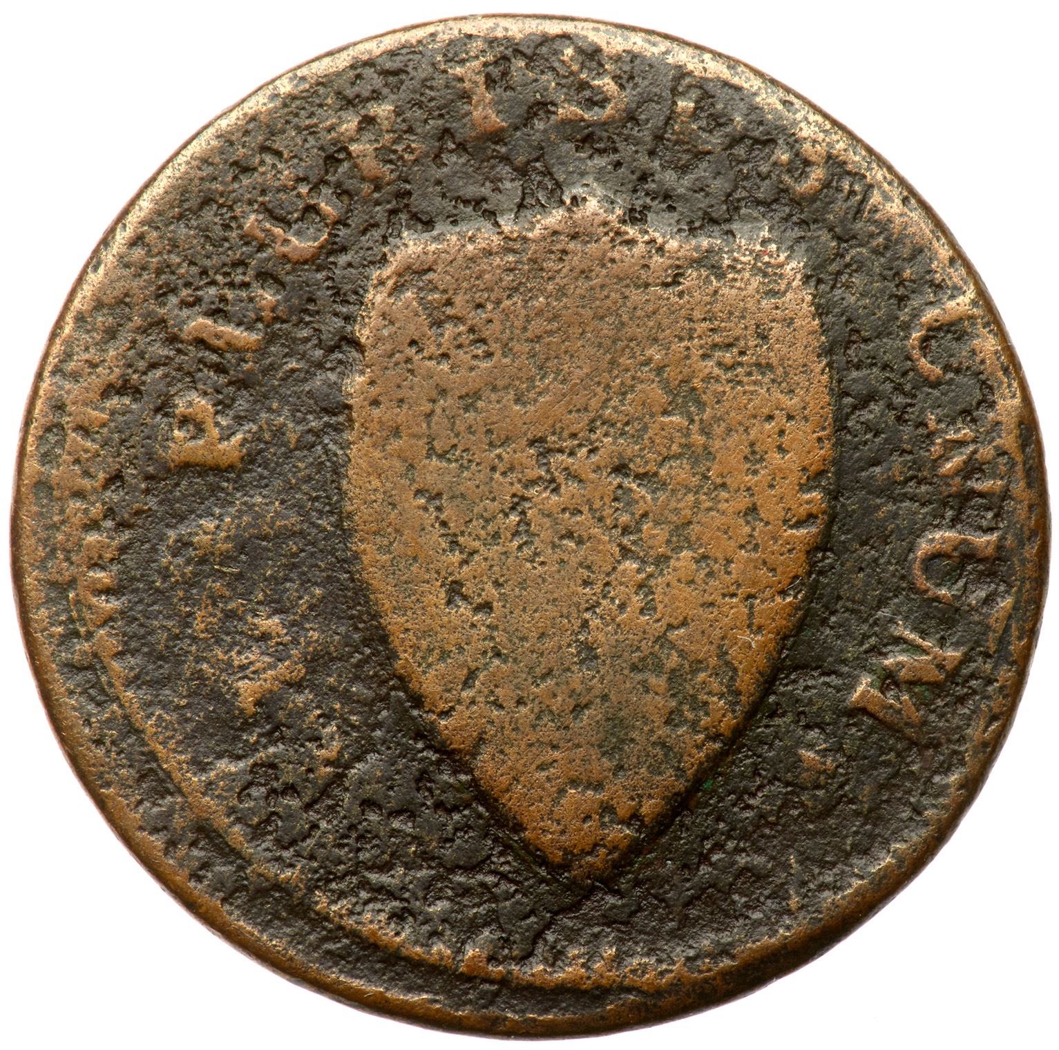 Sharpness VG8 but covered with shallow pitting. No marks or verdigris. The 178 is weak but readable while the 6 is gone. The legends are complete although a few letters are weak. The devices are light to medium brown; the fields are darker olive brown. Struck a bit off center to K-4. Weight 135.4 grains.