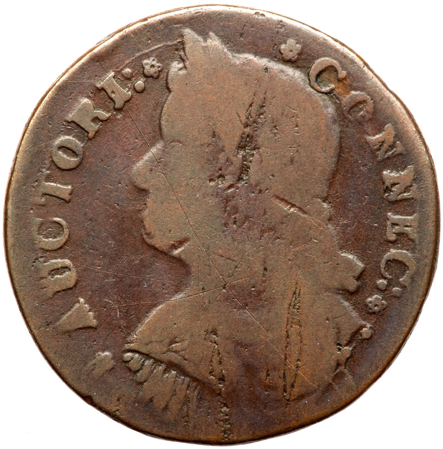 Glossy medium chocolate brown with lighter steel brown toning covering the devices. The obverse is less detailed than the reverse, perhaps a VG10/F15 split. No corrosion or verdigris. There is a shallow lamination in the hair on the obverse and a couple thin fissures on the right side of the reverse; otherwise the surfaces are smooth. A dull diagonal nick on the jaw near the throat is a good identifying mark. Not perfect but nice for the grade. The date is bold and the legends are complete. Superior to the Taylor example of this tough variety and it comes with a very nice provenance. Weight 122.3 grains.