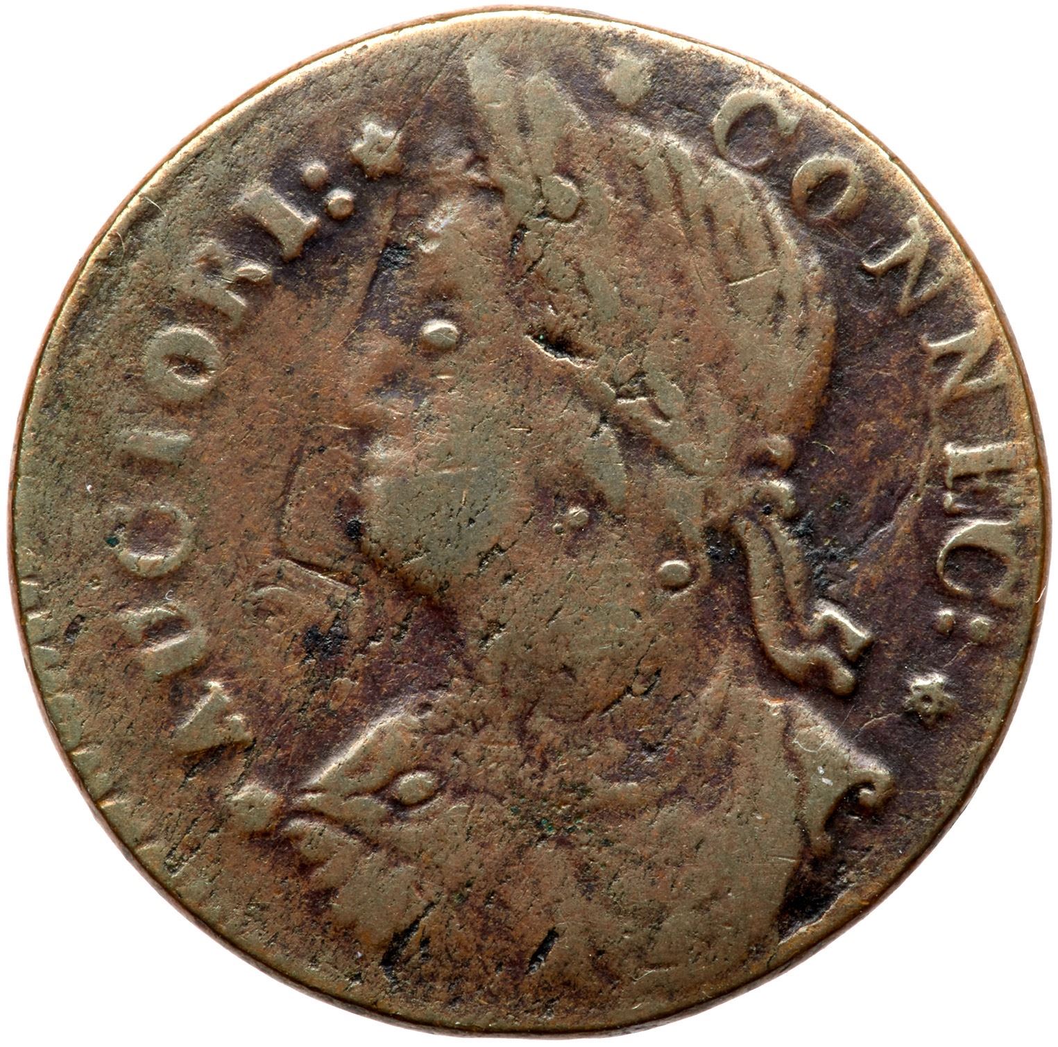 Rather glossy light olive brown with darker reddish olive toning in protected areas. Extremely fine roughness covers the planchet and there are traces of very shallow verdigris in some of the protected areas. Tiny diagonal planchet fissures show on the portrait but overall the surfaces are decent and the eye appeal is nice for the grade. Late state of the dies with obvious clashmarks on the obverse. Not perfect but still superior to the Taylor, Perkins, and Ford examples. A condition census example of this tough variety. Weight 138.9 grains