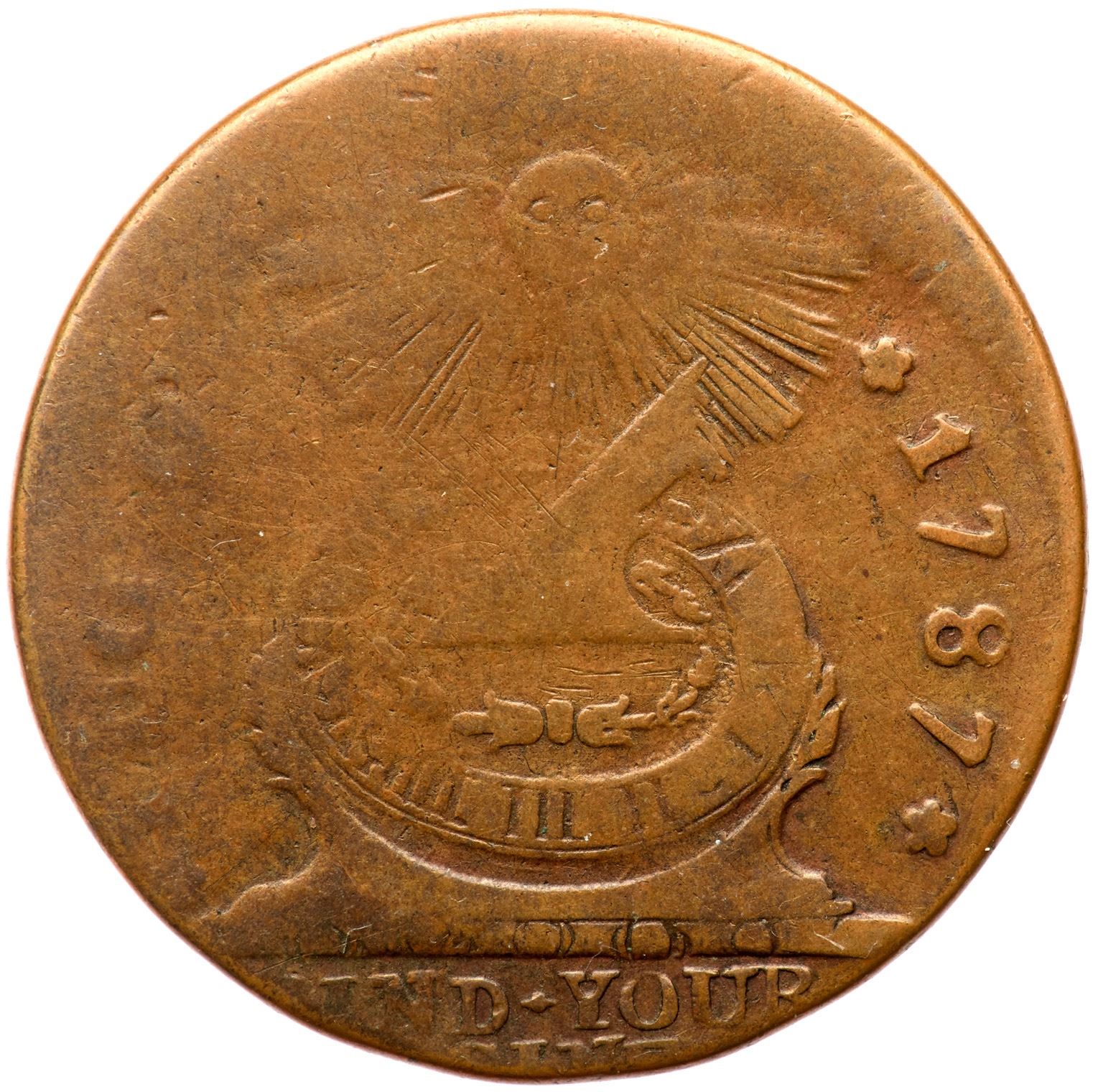 A "STATES UNITED" variety. Glossy medium steel brown and chocolate with some lighter brown toning in protected areas. Smooth and attractive, just worn. The wear pattern is a bit uneven because this piece was struck about 10% off center to K-7 leaving some design elements off the planchet. EDS show a light die crack inside ring #3 but no other cracks. Weight 141.3 grains.