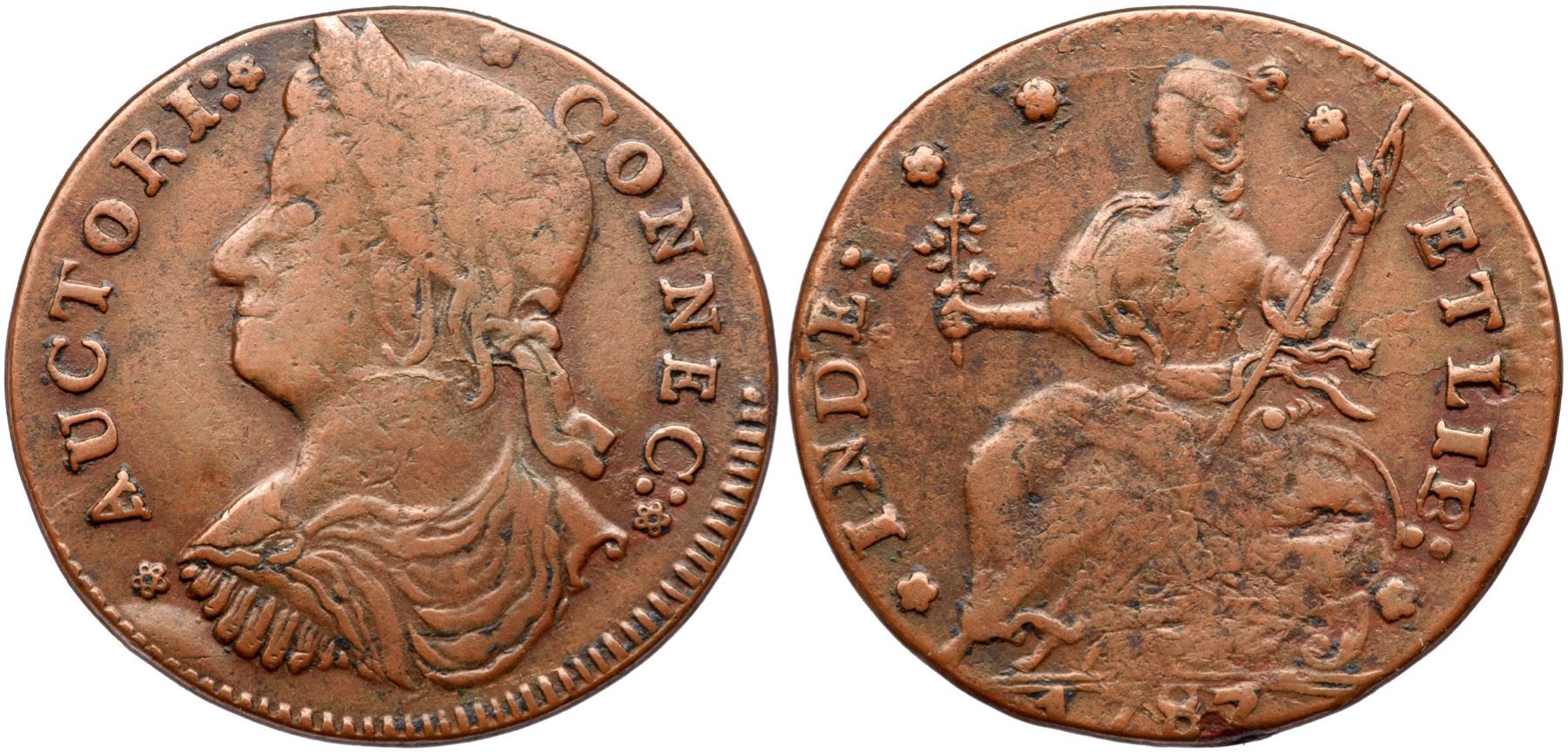 Glossy medium brown and light chocolate. Mostly smooth but there is microscopic chipping on the portrait with stronger chipping on the lower half of the seated figure. There is a small flake out of the planchet between the lower halves of the 8 & 7, a minor lamination that meanders from the rim through the L in LIB, and a horizontal chip in the center of the shield. Later die state with swelling in the field before the portrait, stronger swelling below the bust, and fine die cracks on both sides. Struck slightly off center to K-11 leaving the bottom of the date off the planchet but it remains easily readable and the legends are bold. A beautiful piece that certainly fits well into the condition census. And it comes with a nice provenance. Weight 144.4 grains.