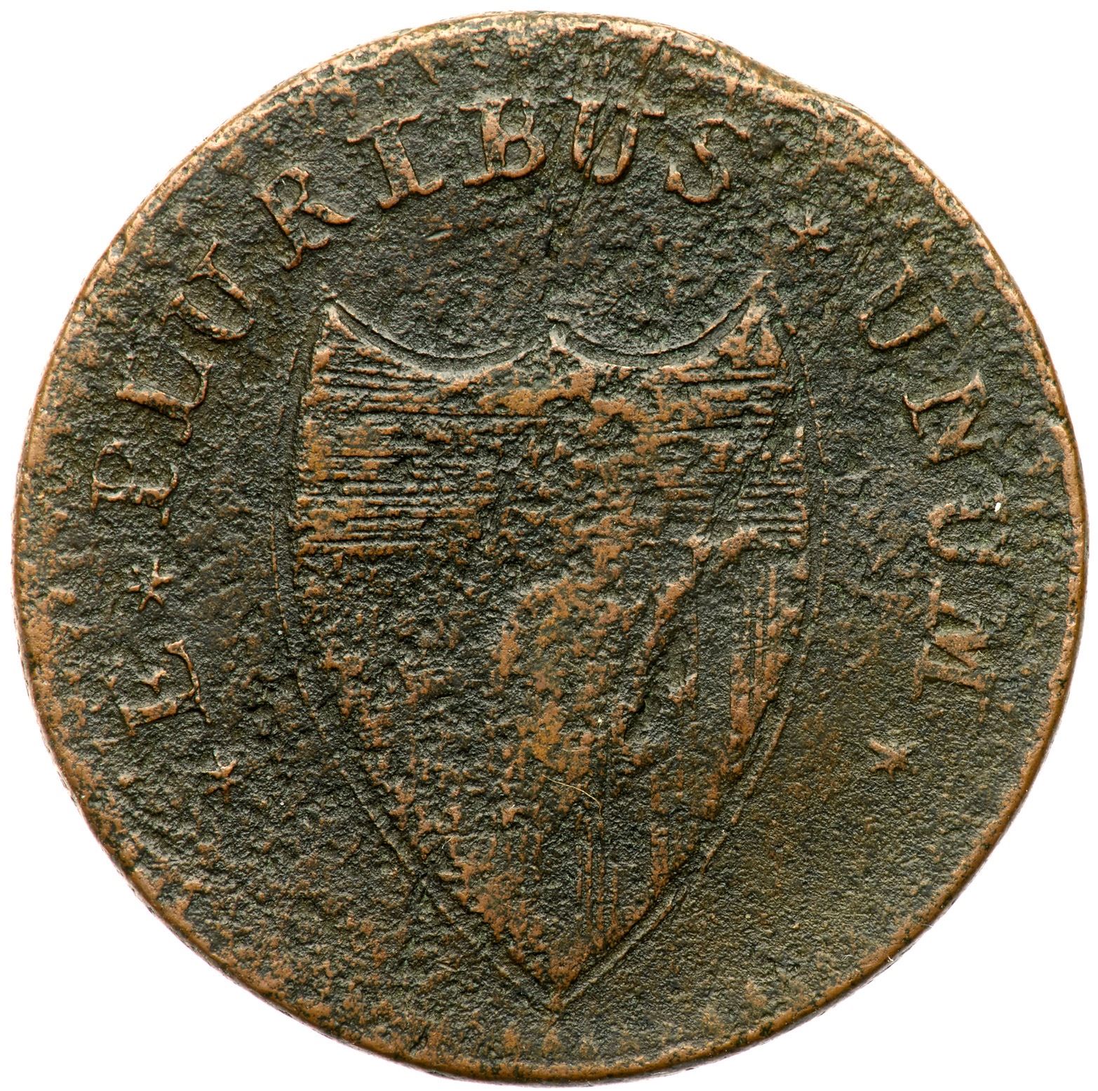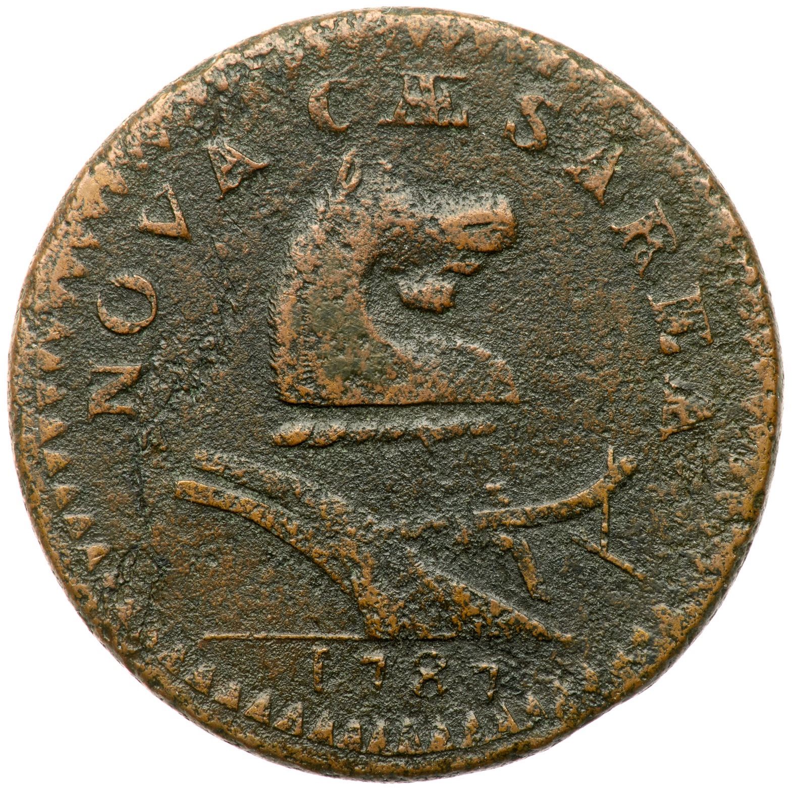 Sharpness VF20 or slightly better but covered with fine to moderate roughness. No verdigris or contact marks. Slightly glossy dark chocolate brown and olive with lighter brown toning on the highpoints. The date and legends are complete and easily readable. Sharp but not very attractive. Weight 158.9 grains.