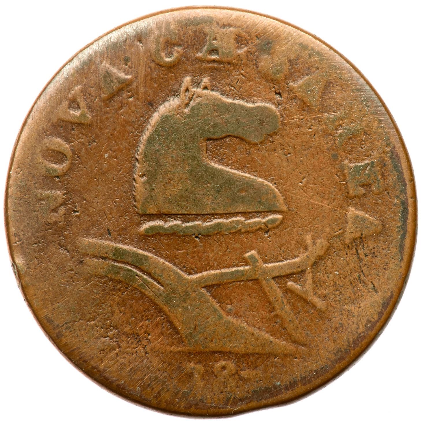 Glossy medium brown and light chocolate with steel brown toning on the highpoints. Smooth and attractive, just worn. A tiny rim nick left of the plow handles is the best identifying mark, and it is trivial. The bottom of the date flows into the rim below but the 787 and legends are easily readable. Weight 144.3 grains.