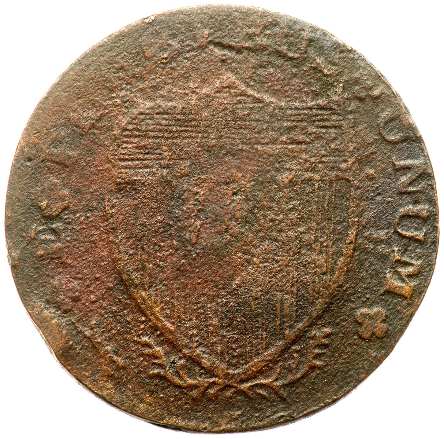 Sharpness F15 or better but eroded and granular. No verdigris and the only notable marks are a rim bruise over the V in NOVA and a chip out of the rim under the second 8 in the date. Medium brown and chocolate. The date is easily readable and the "Running Fox" is clear. Weight 112.2 grains.