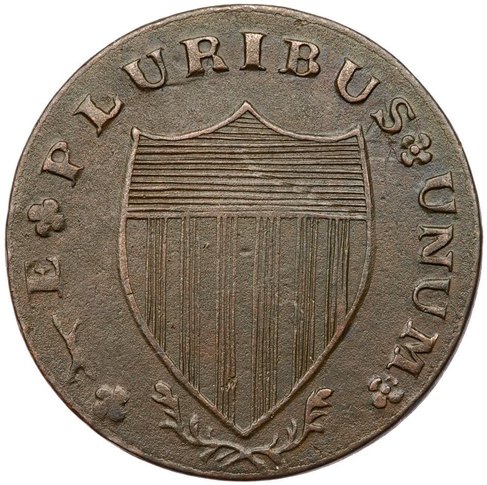 Sharpness close to mint state and very sharp, but uniform microscopic granularity covers the planchet. No marks or verdigris and the eye appeal of this piece is excellent. Frosty light olive brown and steel. One of the sharpest examples known exceeded only by the Garrett piece. The "Running Fox" feature is strong. Weight 140.9 grains. See page 71 in the 2023 "Redbook."