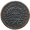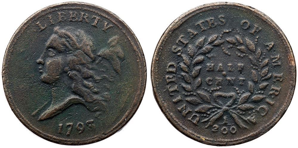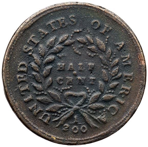 Slightly glossy olive brown and steel with chocolate highpoints. Smooth and attractive. Plain edge, of course. A well-executed electrotype copy.