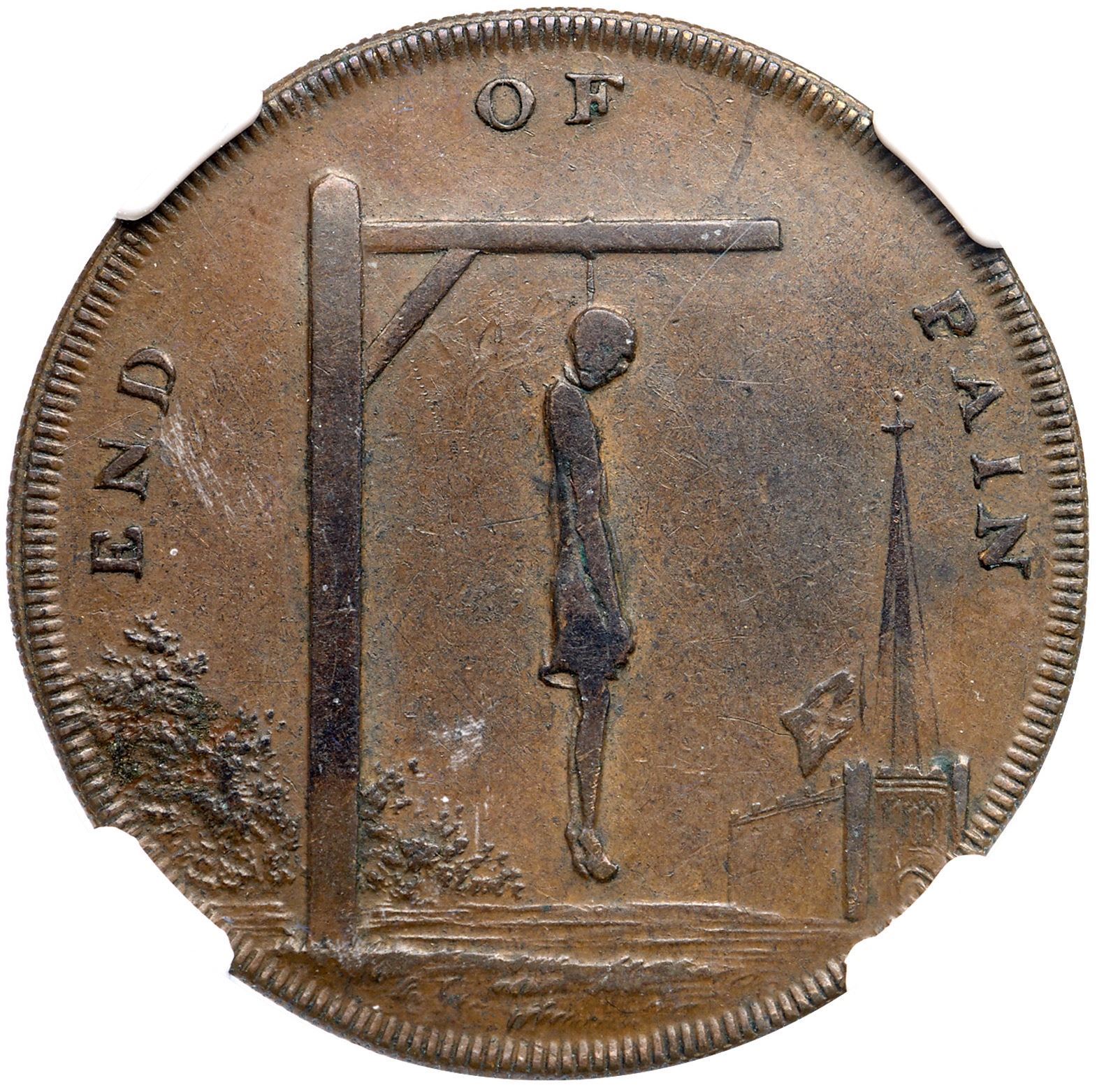 1793 G. Brit, Middlesex Halfpenny Token, END OF PAIN, D&H-833, NGC graded XF45