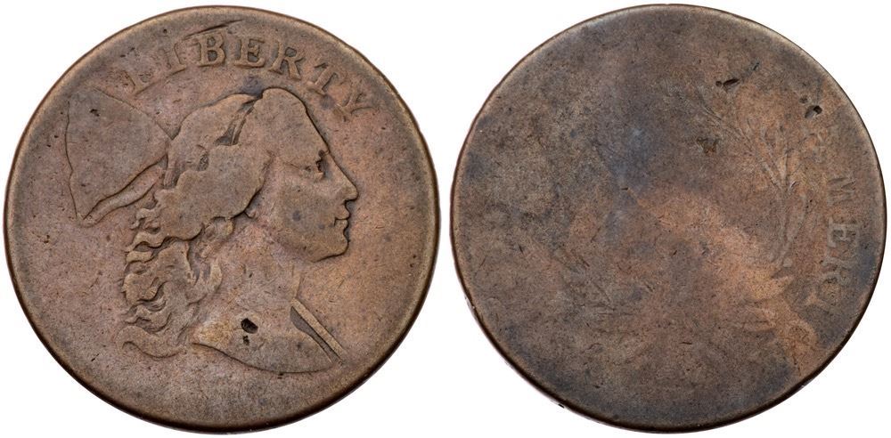 1794 S-24 R-1 Apple Cheek AG3+A couple points sharper on the obverse, worn on the reverse. The notable marks include a scratch atop B in LIBERTY, a dog on the shoulder. and a couple more under O in OF and left of the first A in AMERICA. Tan and steel browns on glossy surfaces. Partial date, full LIBERTY. Certificate Number: