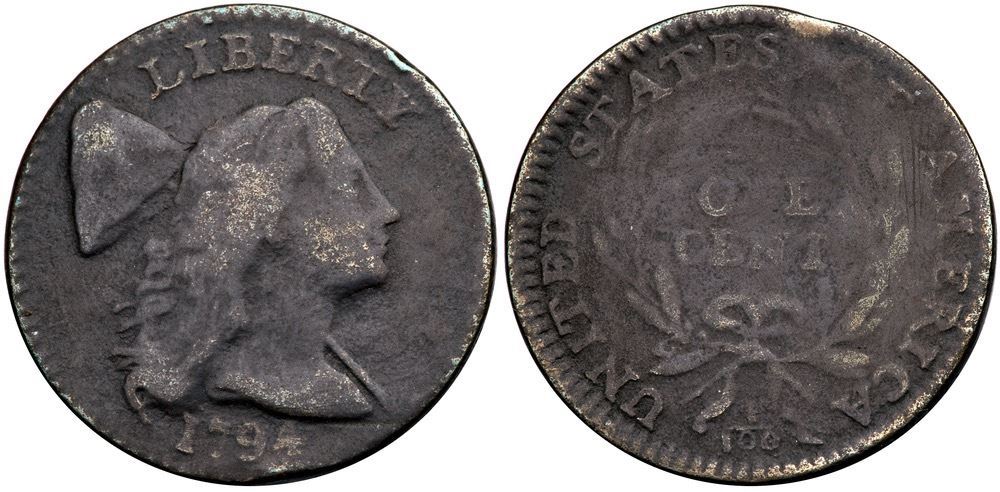 1794 S-30 R-1 G5VG8 sharpness but the surfaces have been smoothed with traces of microroughness remaining underneath. The notable marks include minor rim bruises under 4 in the date, over T in LIBERTY, and after the last S in STATES, as well as some faint hairlines around the first A in AMERICA. Glossy deep steel brown, bold date and LIBERTY, readable legends.Certificate Number: