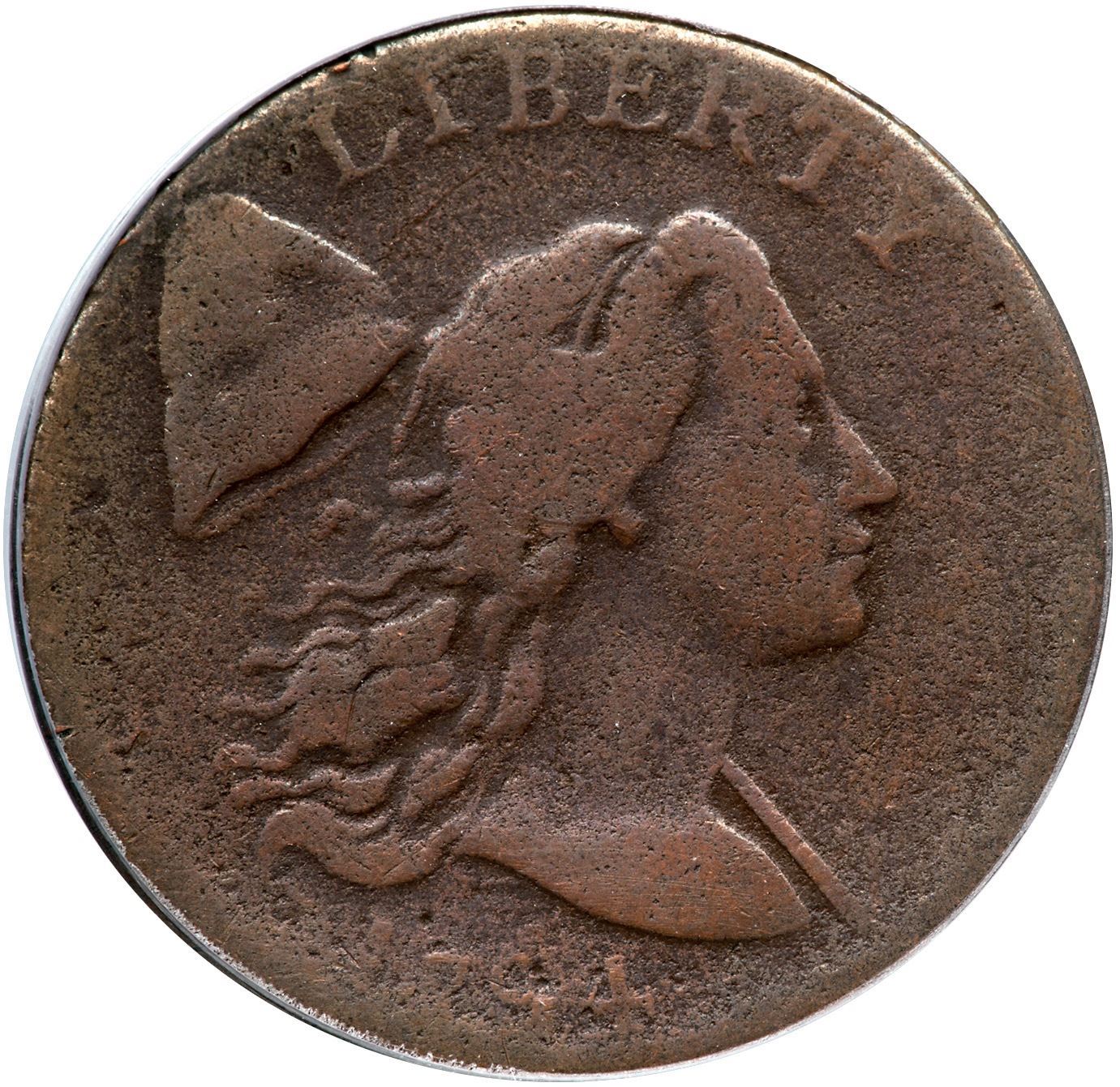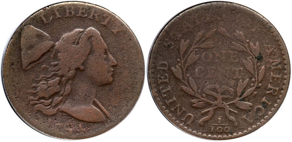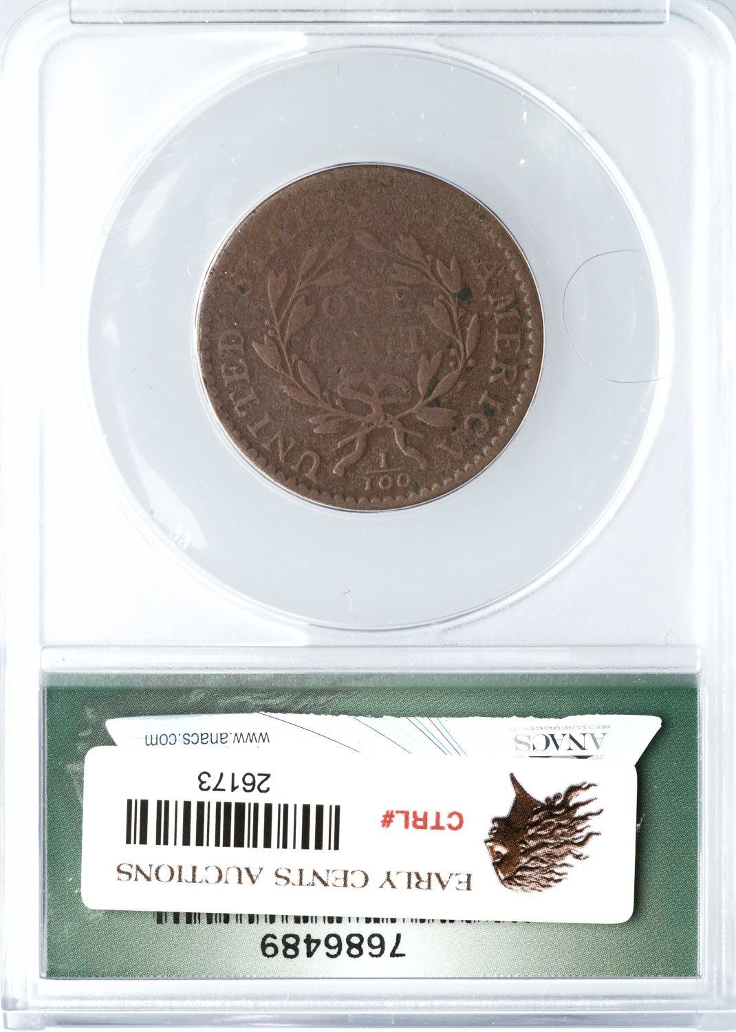 1794 S-42 R-4 ANACS VG10 Details (Corroded, Cleaned)VG sharpness but cleaned long ago with light a few spots of verdigris on the right reverse. Mixed deep ruddy brown and olive with light microporosity on the surfaces. Weaker along the lower obverse and upper reverse, but still readable date and legends in hand. Our grade is G4Certificate Number: Certificate Number# 7686489