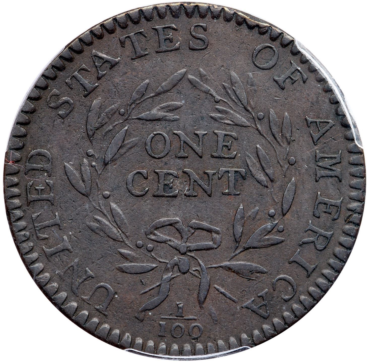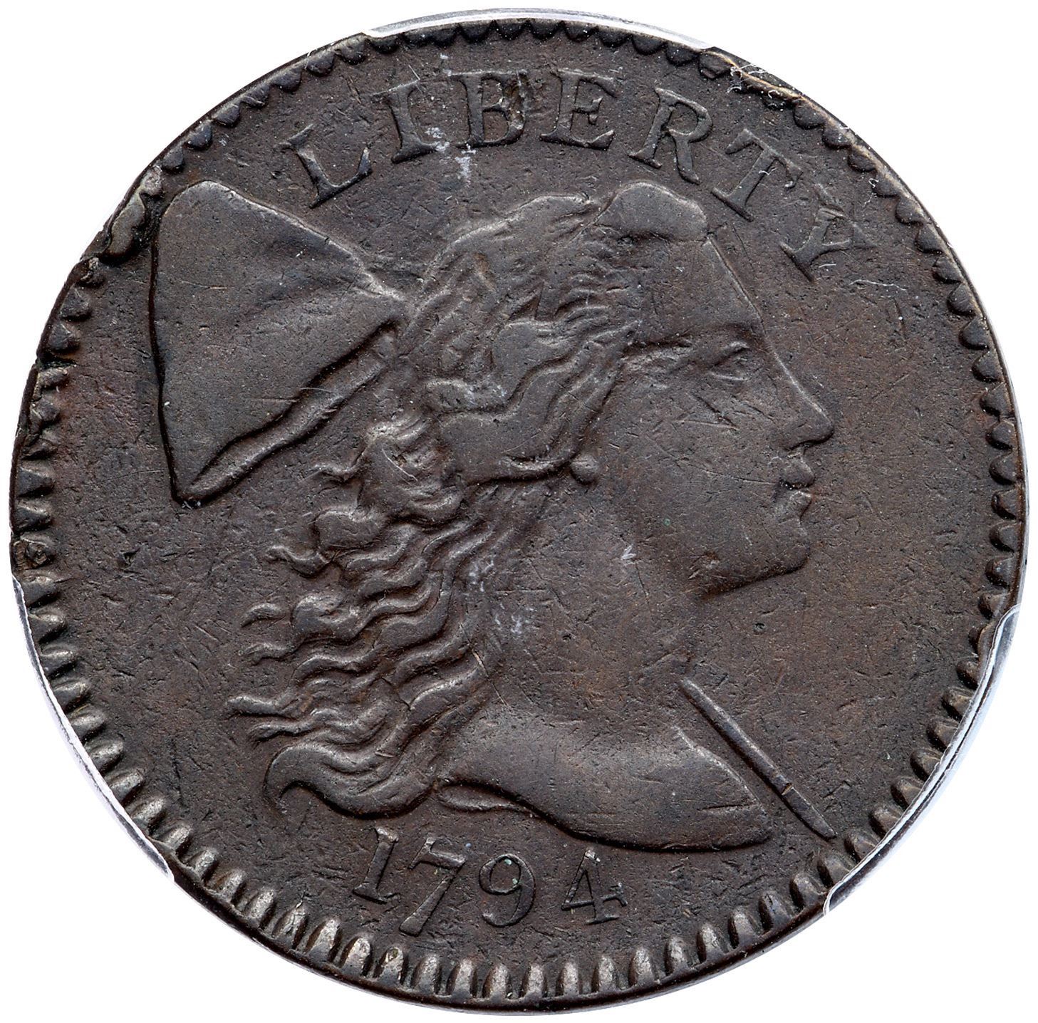 Medium steel brown and chocolate. Sharp and attractive with a few contact marks but no roughness. The only notable marks are a rim bruise at the top of the cap, a flake or nick left of the eye, and a rim bruise left of the O in OF. Otherwise quite nice with only a few of the normally seen planchet flakes in the fields. Nicely struck MDS, Breen state II, Heck state 1, with die cracks on the obverse. Our grade is VF35 sharpness net VF30. 901374.40/35678714