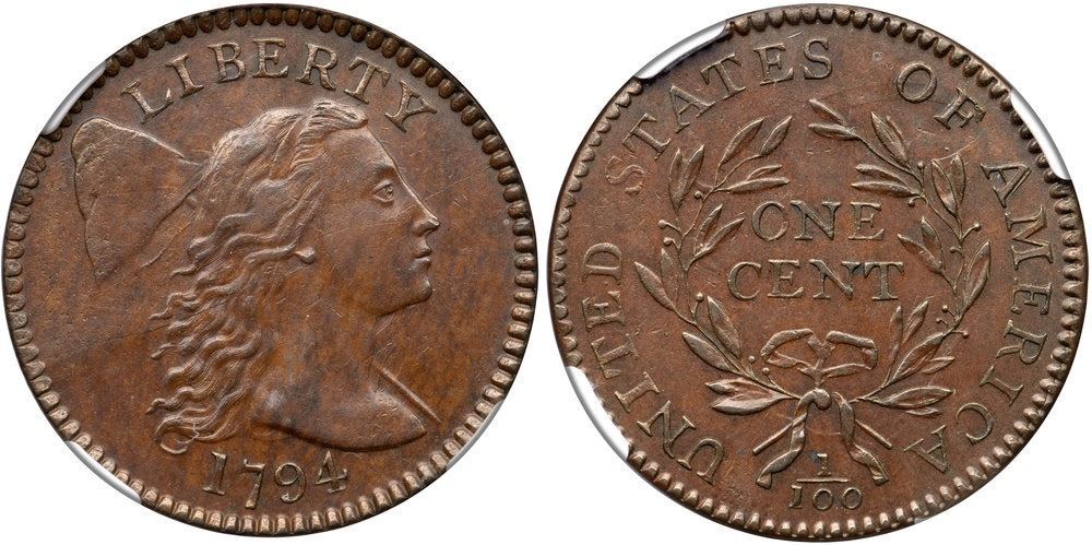 1794 S-68 R5 Head of 1795 NGC graded MS62 Brown
