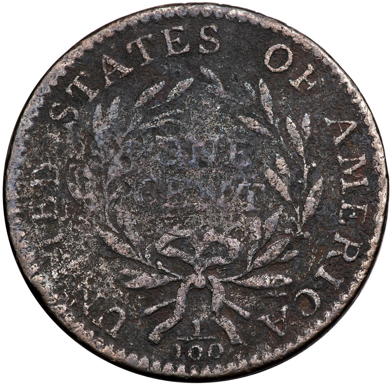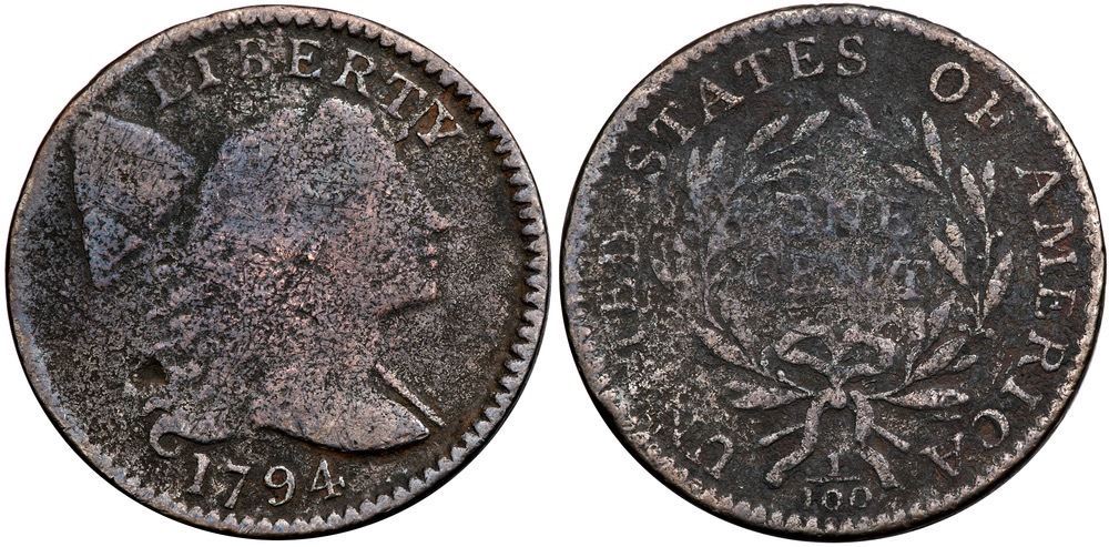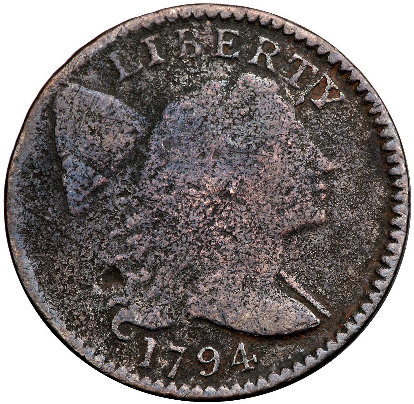 1794 S-70 R-2 G5A few points sharper but light porosity and roughness covers the surfaces. There is a notable dig on the lower hair curls, and minor rim nicks over I in UNITED and O in OF. Dark olive brown patina with a strong date and readable legends.Certificate Number: