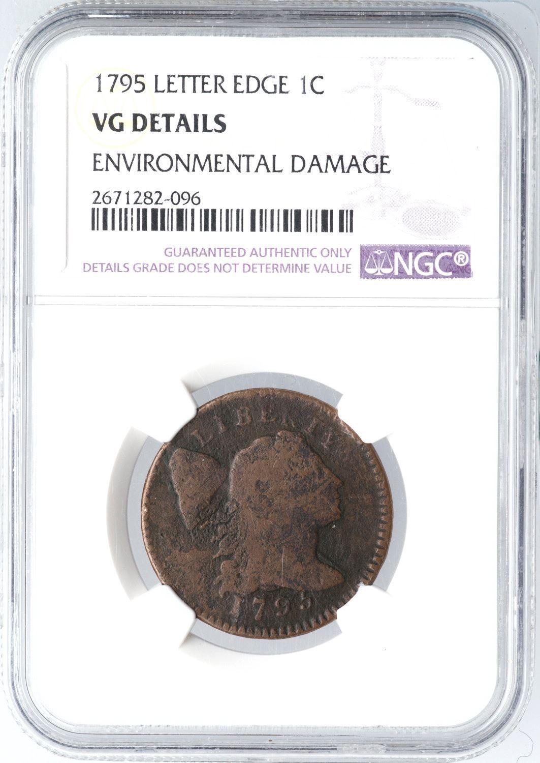 1795 S-74 R-4- Lettered Edge NGC VG Details (Environmental Damage)VG8 sharpness but light roughness and granularity covers the surfaces. There are trivial marks consistent with the grade, nothing distracting. Two tone lighter brown and deeper chocolate surfaces. Our grade is G4.Certificate Number: Certificate # 2671282-096