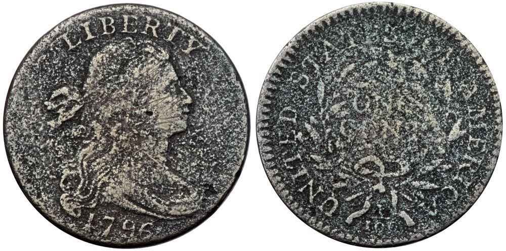 1796 S-110 R-3 G4VG10 sharpness but corroded with granular surfaces and old scratches on the obverse portrait and fields. Bold date and LIBERTY, readable reverse legends. MDS.Certificate Number: