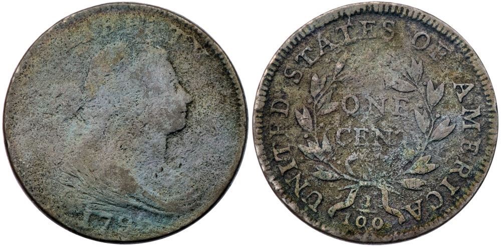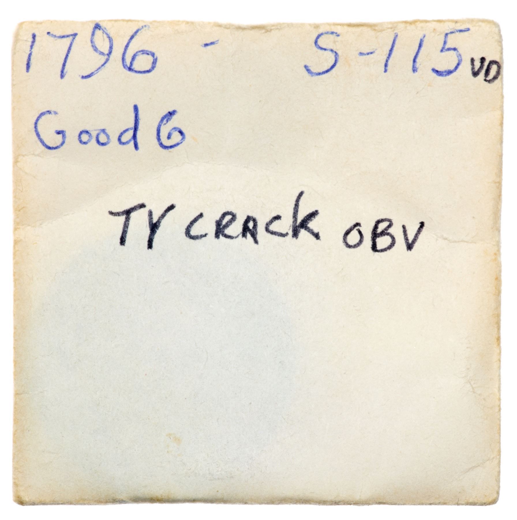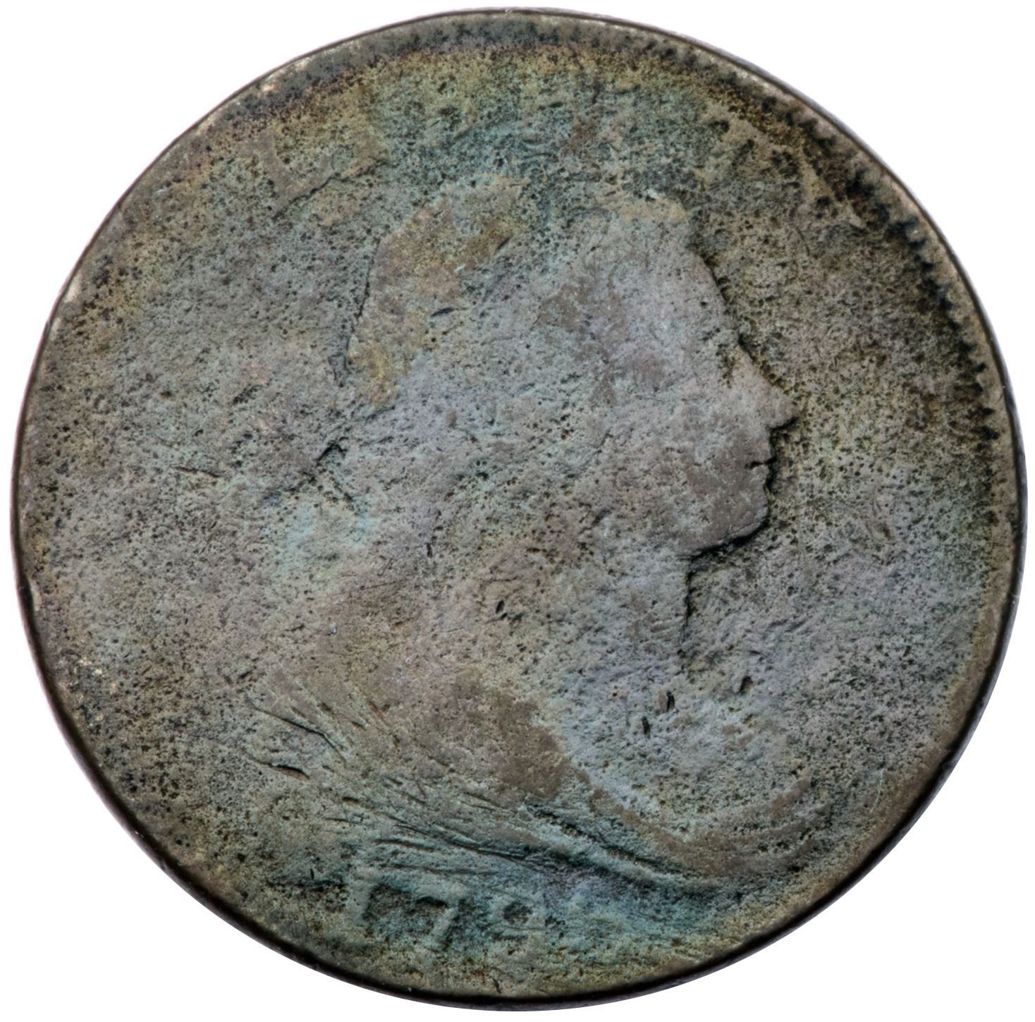 1796 S-115 R-3 AG35 points sharper but the surfaces are covered with granularity and there are old scratches on the lower bust and date. Glossy deep olive and steel surfaces. Readable date and full legends. MDS, Breen state VI.Certificate Number: