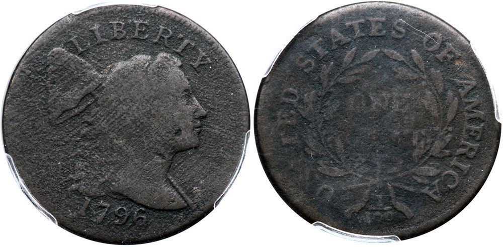 1796 S-81 R-3 PCGS G Detail (Exc. Corrosion)VG7 sharpness but the surfaces are granular, more so on the obverse than the reverse. There are also a couple nicks on Liberty's cheek and throat. Dark olive and steel browns. Other than CEN in CENT the legends are readable, strong date. Our grade is G4.Certificate Number: Certificate # 1392.97/40240850