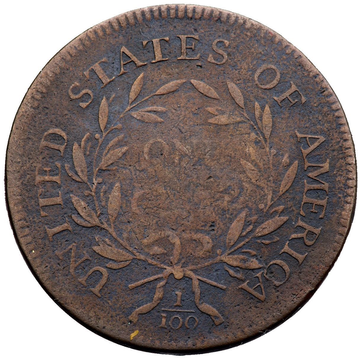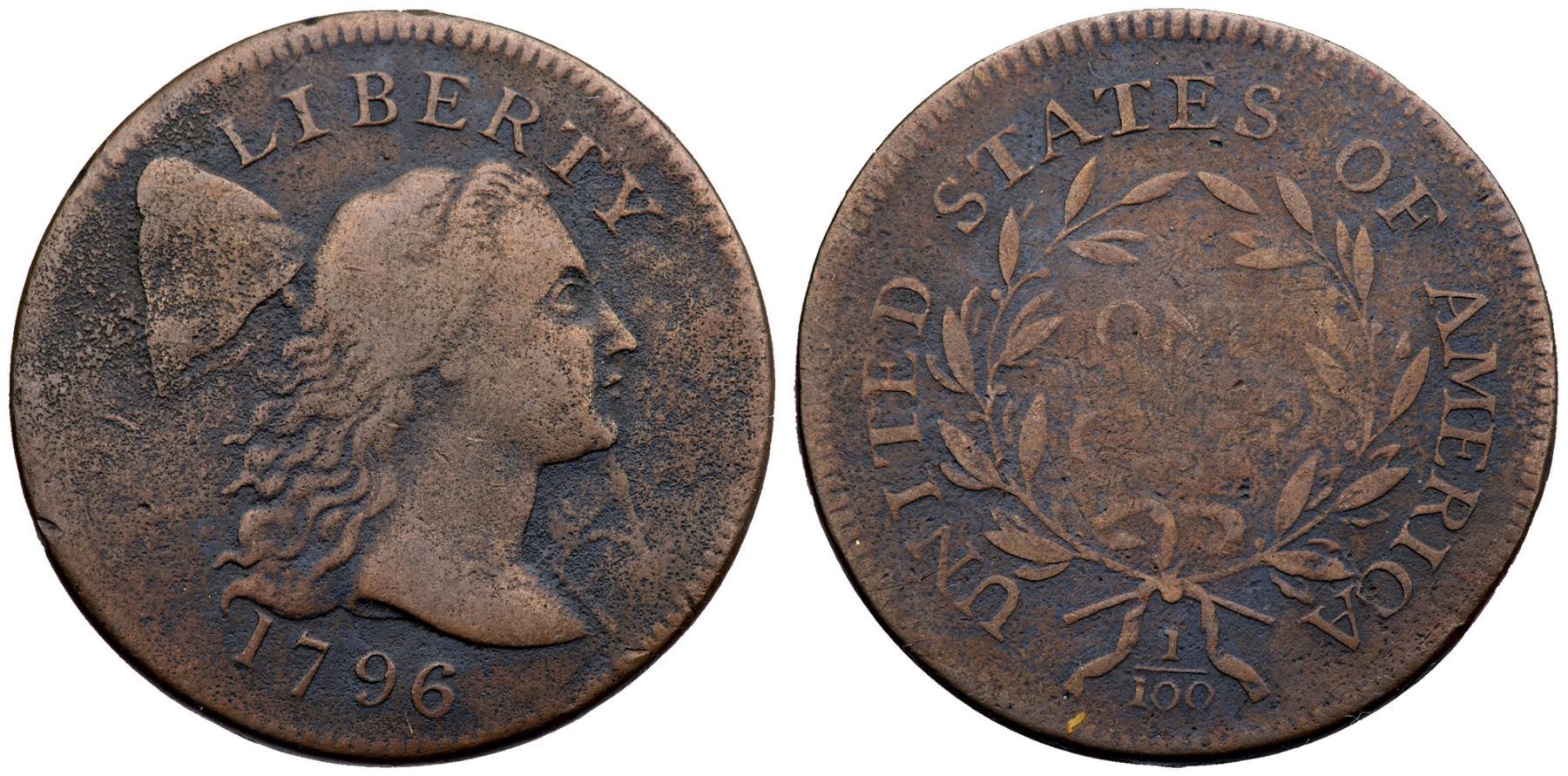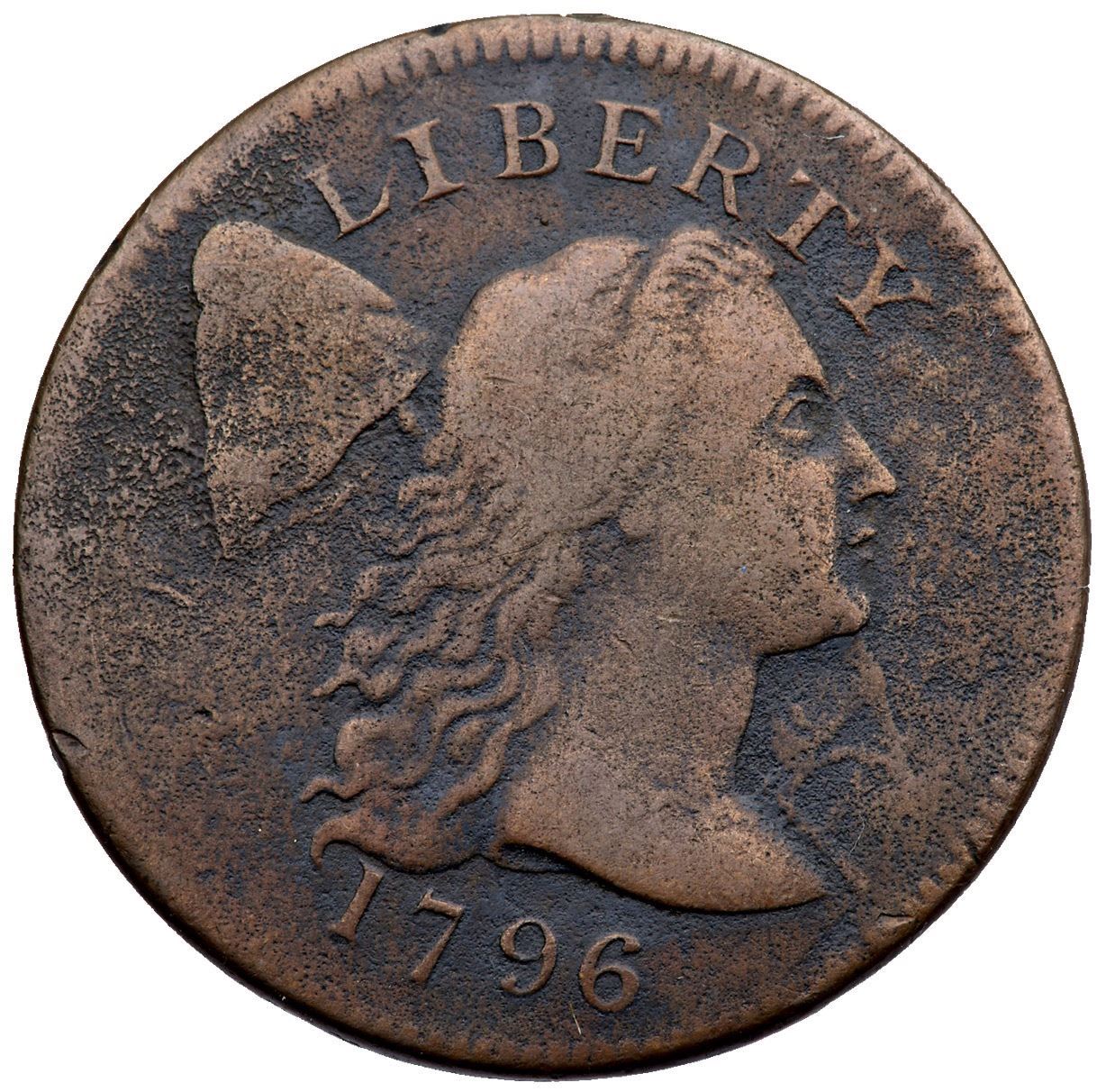 1796 S-87 R-5 VG8Fine sharpness but there is fine roughness and porosity on the surfaces. Only a couple trivial marks, a tick on the rim behind the bottom hair the best identifying. Weaker on the central reverse, otherwise bold date and legends.Certificate Number: Pedigree: Ex; EAC Vegas 1997 - William Schwartz
