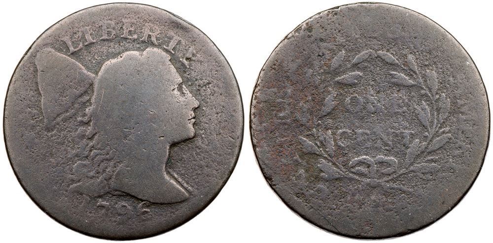 Rather glossy dark olive brown and steel. The highpoints are smooth but fine roughness covers the fields and protected areas. No verdigris. The only mark is a rim bruise at the T in LIBERTY. The date and LIBERTY are easily readable but less than half the legends on the reverse remain visible. Struck with the reverse nearly upset head-to-head rather than the normal head-to-foot orientation.