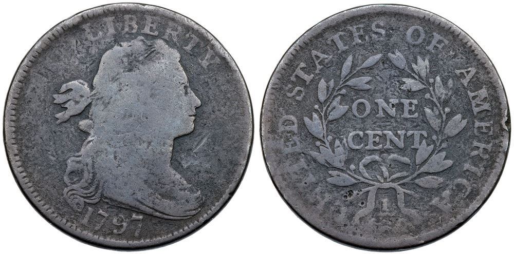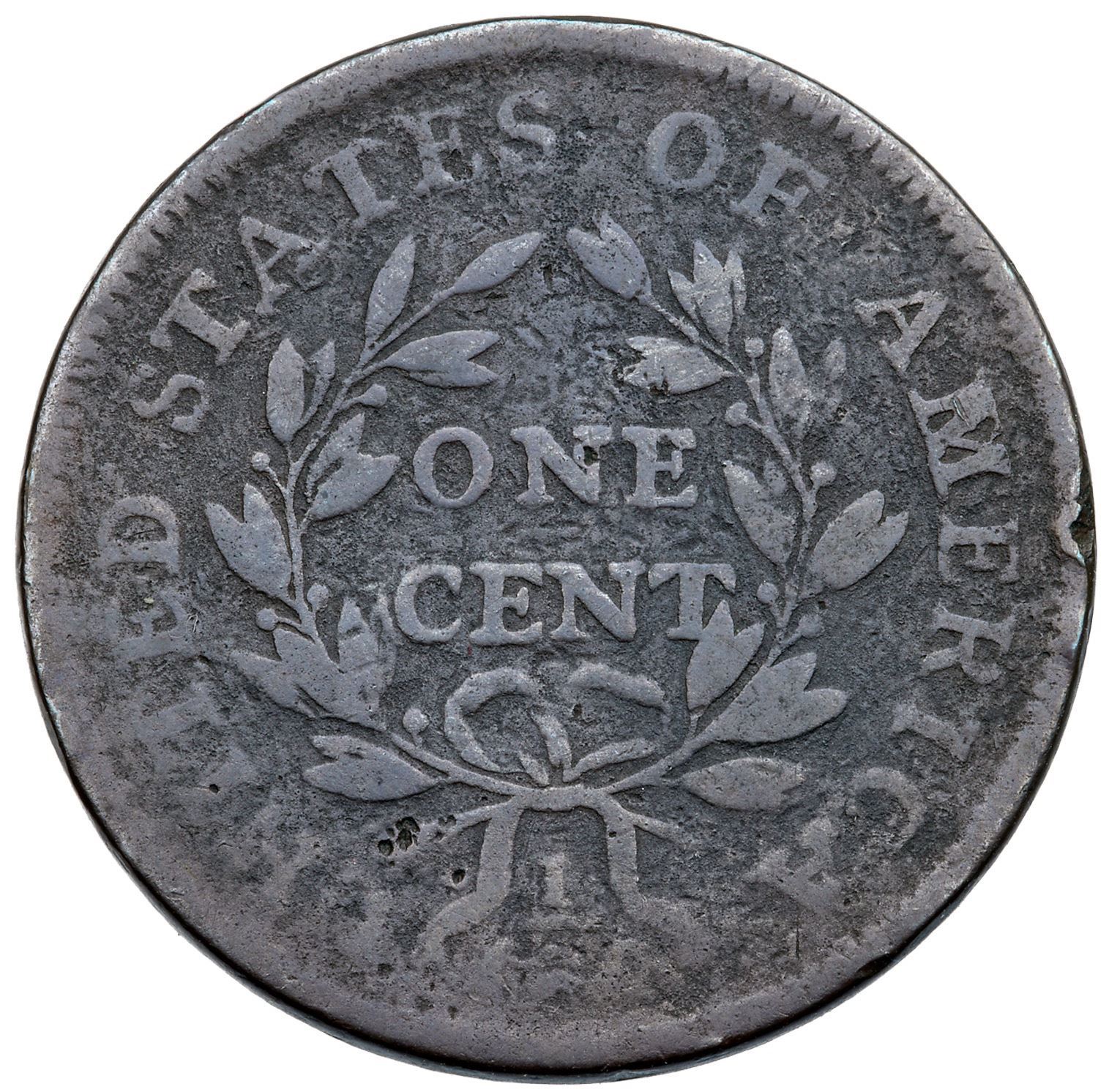 Slightly sharper but the fields and protected areas are covered with fine roughness. No verdigris and the only significant mark is a diagonal nick off the chin. Slightly glossy dark steel and olive brown. MDS, Breen state II. The date is clear as are most of the legends, the only weakness being along the bottom of the reverse. The M over E feature is obvious. A tough variety. Thomas D. Reynolds-Stephen Chappen 4/15/2013-William W. Woytasek
