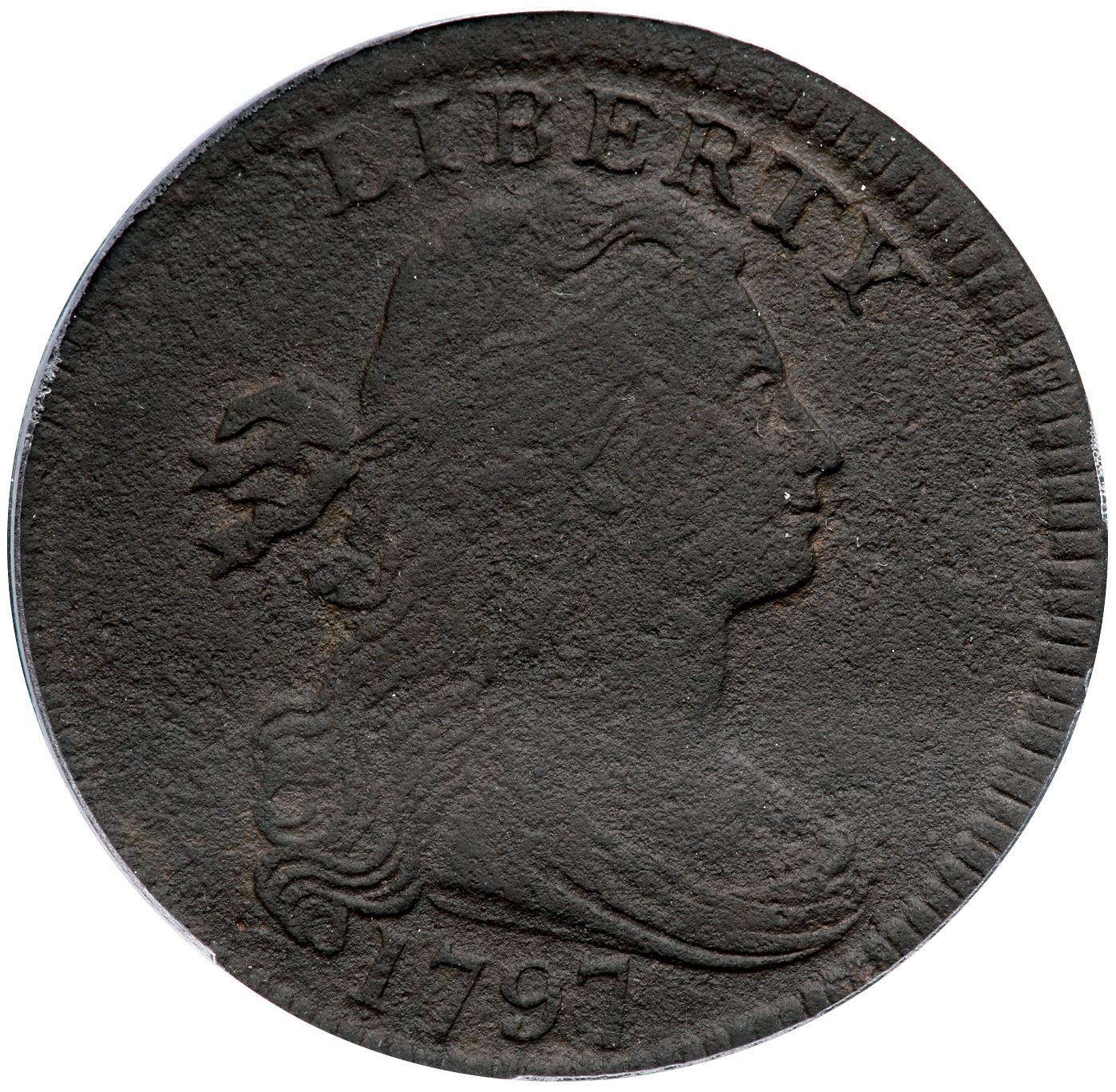 1797 S-138 R-1 ANACS F15 Details (Corroded)Fine sharpness but covered with uniform granularity across the surfaces. Uniform dark olive patina, free of notable marks. Strong date and legends. Our grade is G5.Certificate Number: Certificate Number# 7803784