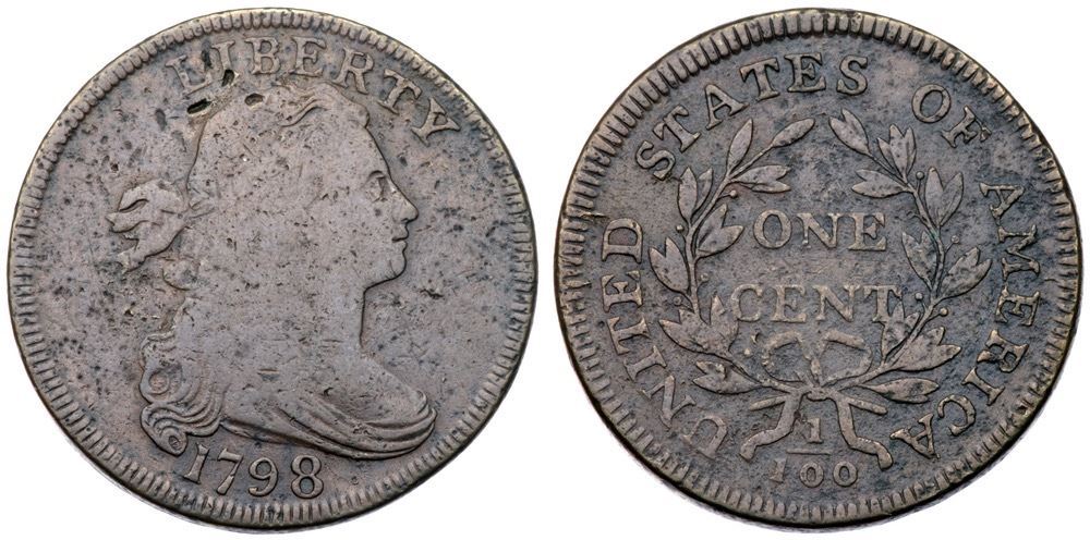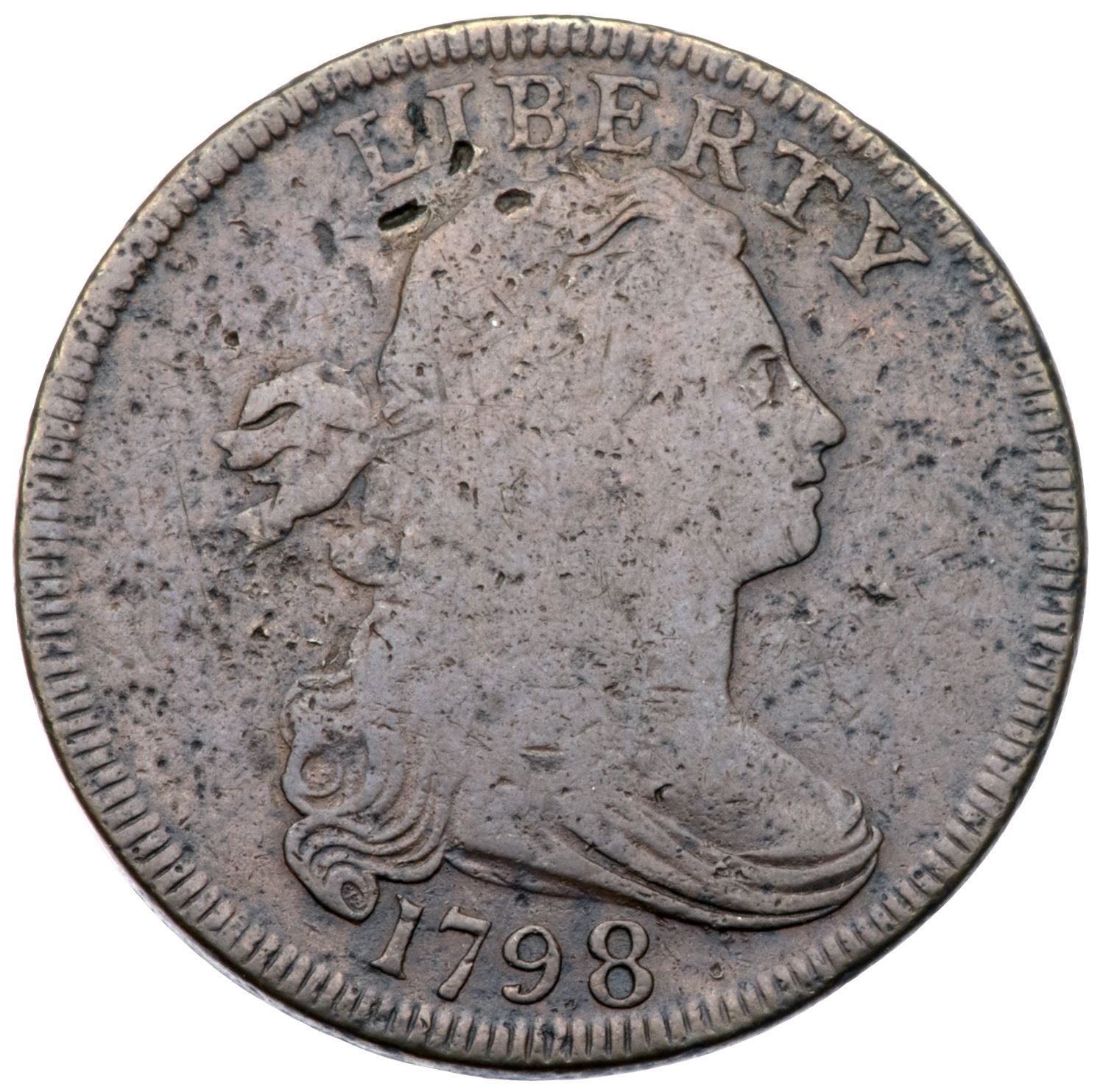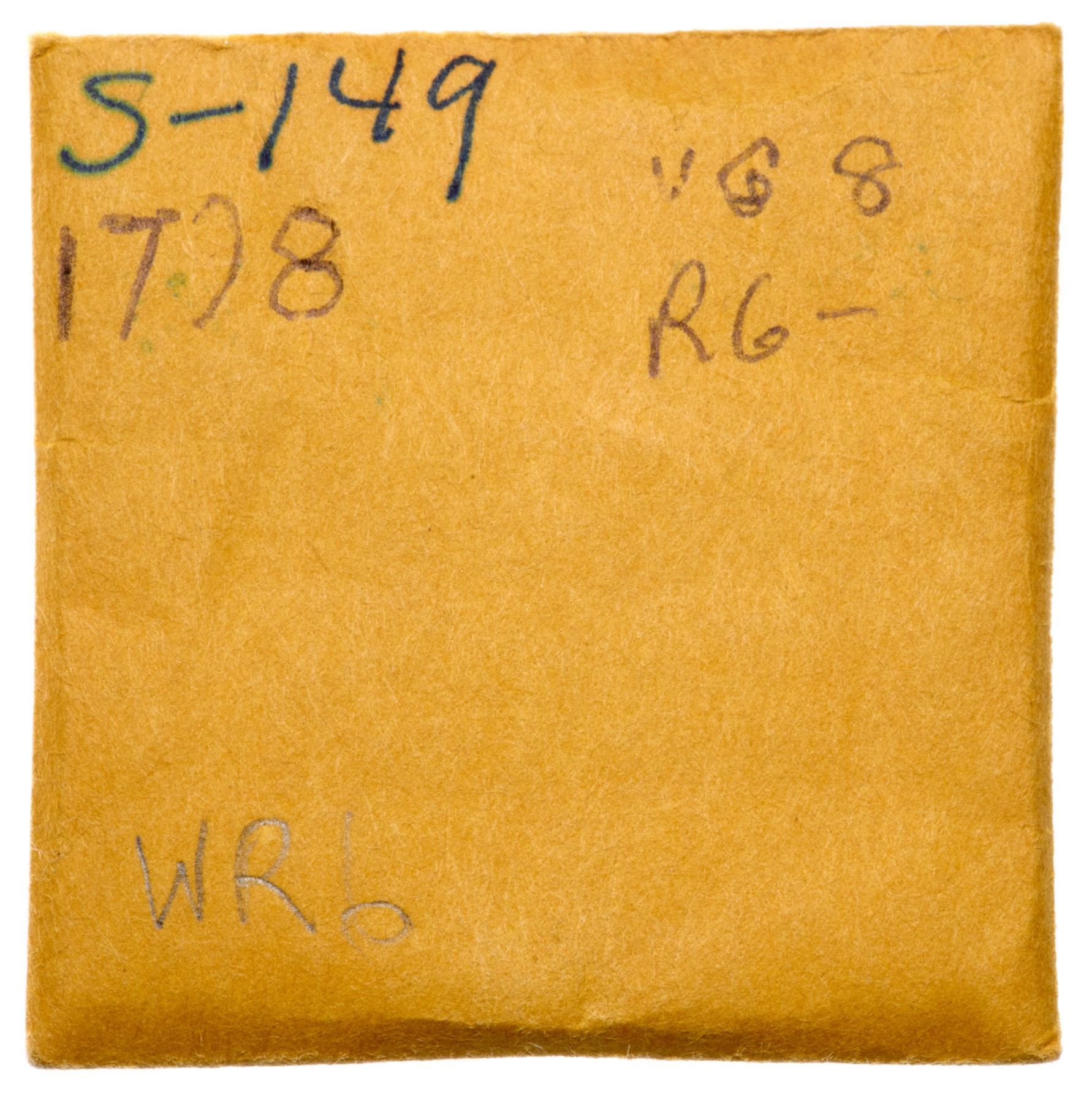 1798 S-149 R-4+ VG7A few points sharper but there are a few digs under LIB and light pitting on the surfaces. Otherwise trivial marks consistent with the grade, none noteworthy. Semi-glossy medium olive brown surfaces. EDS, Breen state I. Graded VG7 net G5 and tied for CC#18 by Noyes, his photo #27694.Certificate Number:
