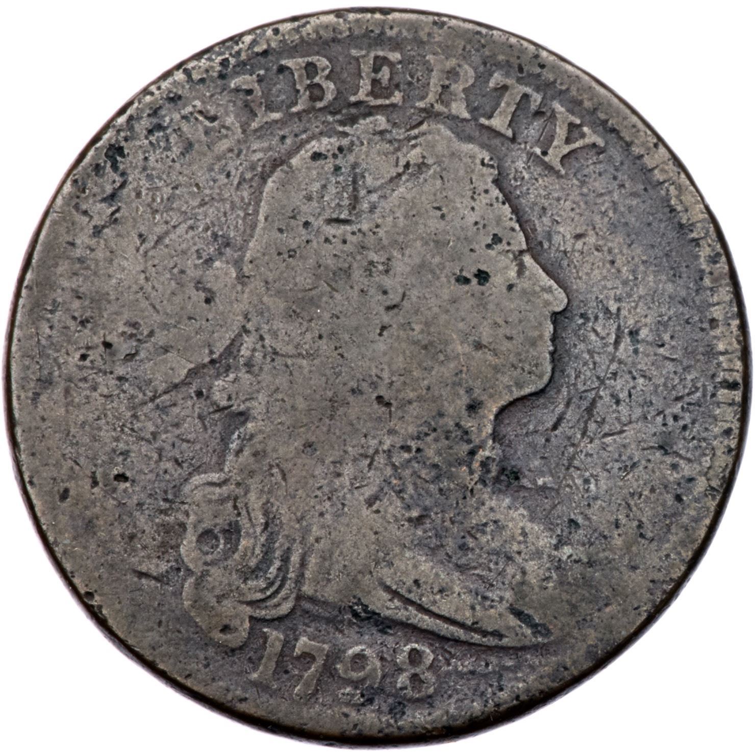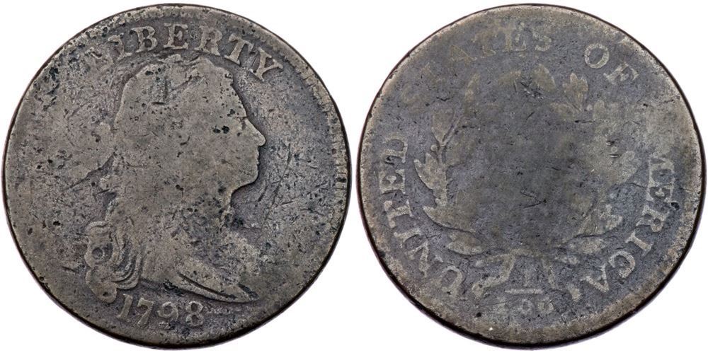 1798 S-157 R-2 G4Glossy medium brown with deeper steel and maroon in some fields and protected areas. There are trivial marks consistent with the grade scattered on either side. Glossy, relatively smooth surfaces. MDS. Certificate Number: