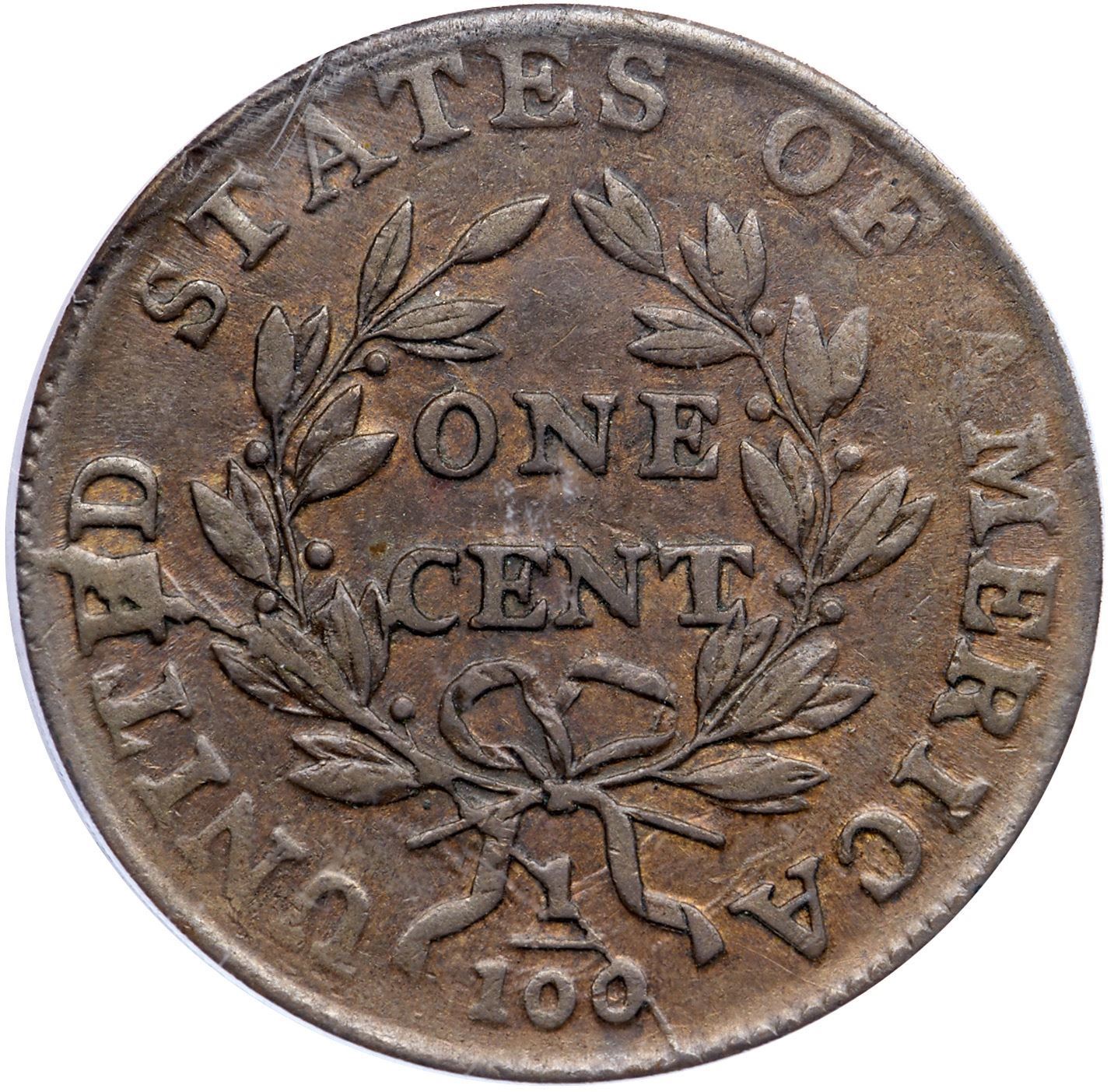 Choice glossy chocolate brown and lighter steel brown with frosty light golden brown and tan faded down from mint color in protected areas on the reverse. The only defect is a small planchet void at the top of the E in LIBERTY, as struck. M-LDS, Breen state IV, with three small but well-defined rim cud breaks at TA in STATES. Struck with the reverse rotated 30 degrees CCW from the normal head-to-foot die orientation. A very attractive example of an otherwise common die variety. Graded VF35 and tied for CC#20 in the Noyes census, his photo #39323. Our grade is EF40+. The attribution is noted on the PCGS label. 36068.45/15699493 Ex McCawley & Grellman Auctions/Superior 9/2004:373-David Johnson, 2008 EAC Sale, McCawley & Grellman Auctions 5/10/2008:304