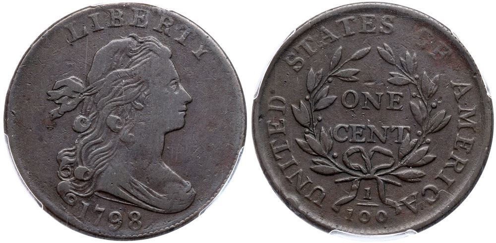 1798 S-184 R1 Small 8, Style II Hair, PCGS graded VF20