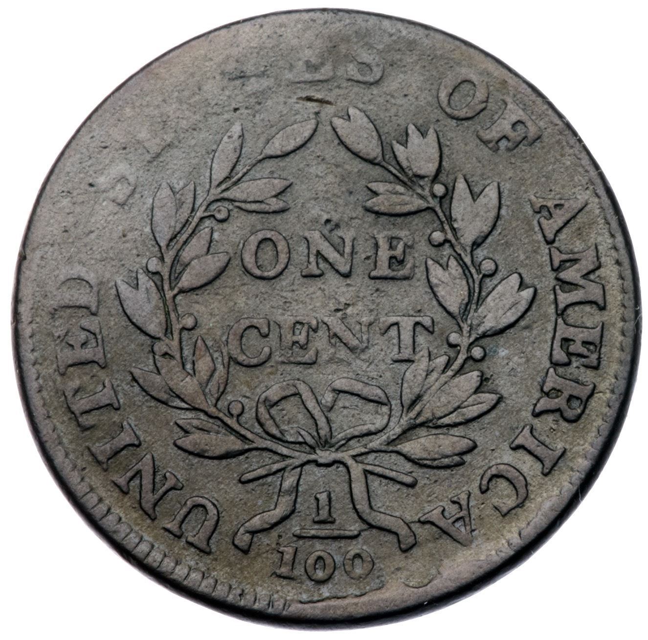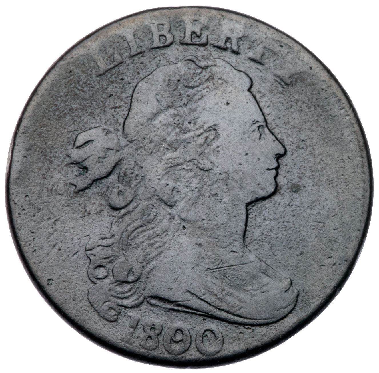 1800/179 S-194 R3 Overdate 180 over 179, Style II Hair VG10Mostly glossy olive brown and steel. Extremely fine granularity covers the fields but there is no verdigris, and the eye appeal is decent for the grade. The only mark is a very light rim bruise off the hair ribbon. MDS, Breen state VI. The die is failing at TY and to the right. The overdate feature is easily visible.Certificate Number: Pedigree: From the Fred H. Borcherdt Collection