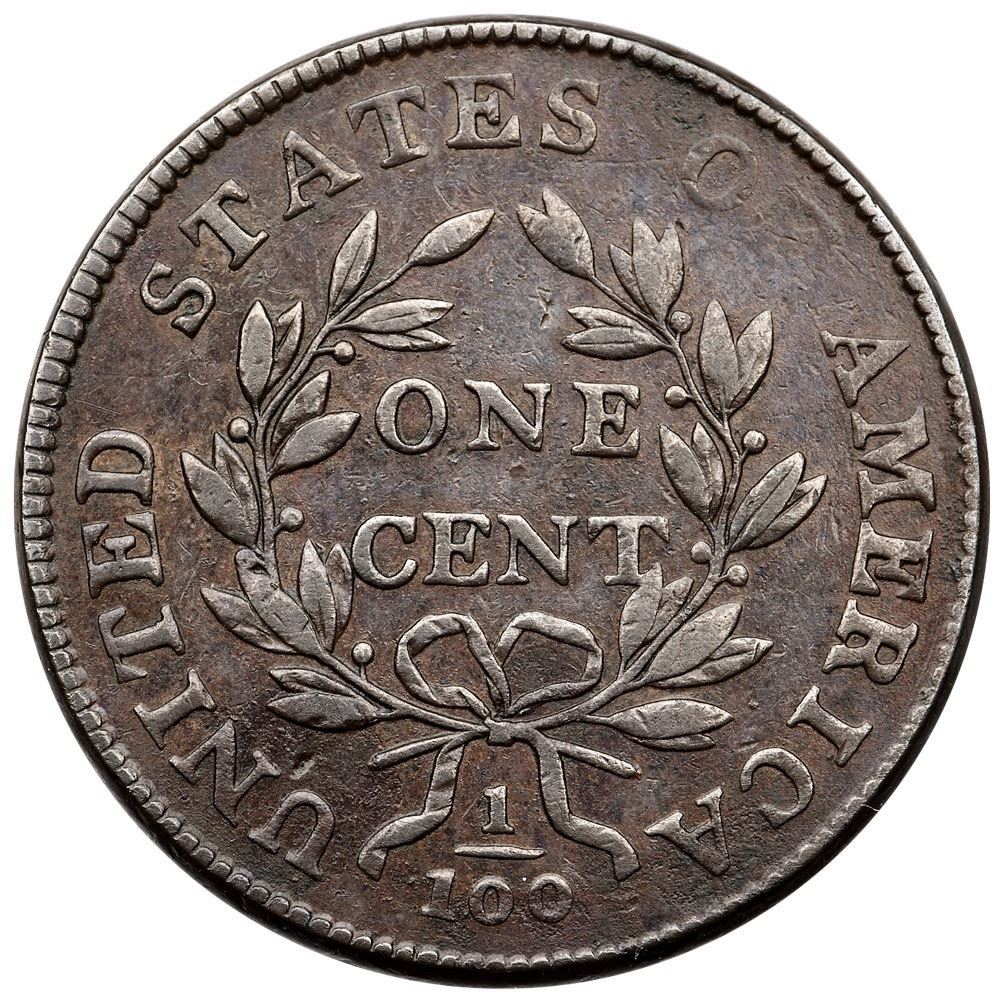 At least 5 points sharper but there are several hairline scratches on the face with a few extending down onto the neck. All the scratches blend nicely into the natural toning and are not especially distracting. Otherwise the surfaces are smooth with only a few trivial marks. The reverse is close to Choice. Glossy reddish steel brown and chocolate with some frosty lighter brown in protected areas on the reverse. EDS +, Breen state II, with a retained cud break over TY. Graded EF40 net VF20 and tied for CC#3 in the Noyes census, his photo #85139. Bland says net VF20 and tied for CC#10. Comes with a nice provenance. Ex Ray Gallo 10/1960-R. E. Naftzger, Jr. 12/11/1986-Herman Halpern, Stack's 3/16/1988:183-Leigh Bernard-Thomas D. Reynolds 12/27/2000-Terry Denman Collection, 2022 EAC Sale, Early Cents Auctions 5/14/2022:228 (includes the Denman collection envelope)