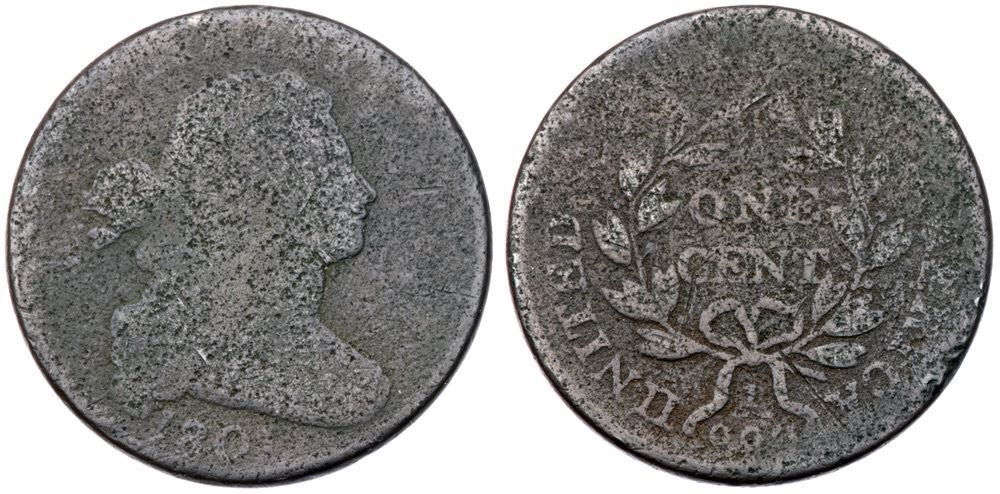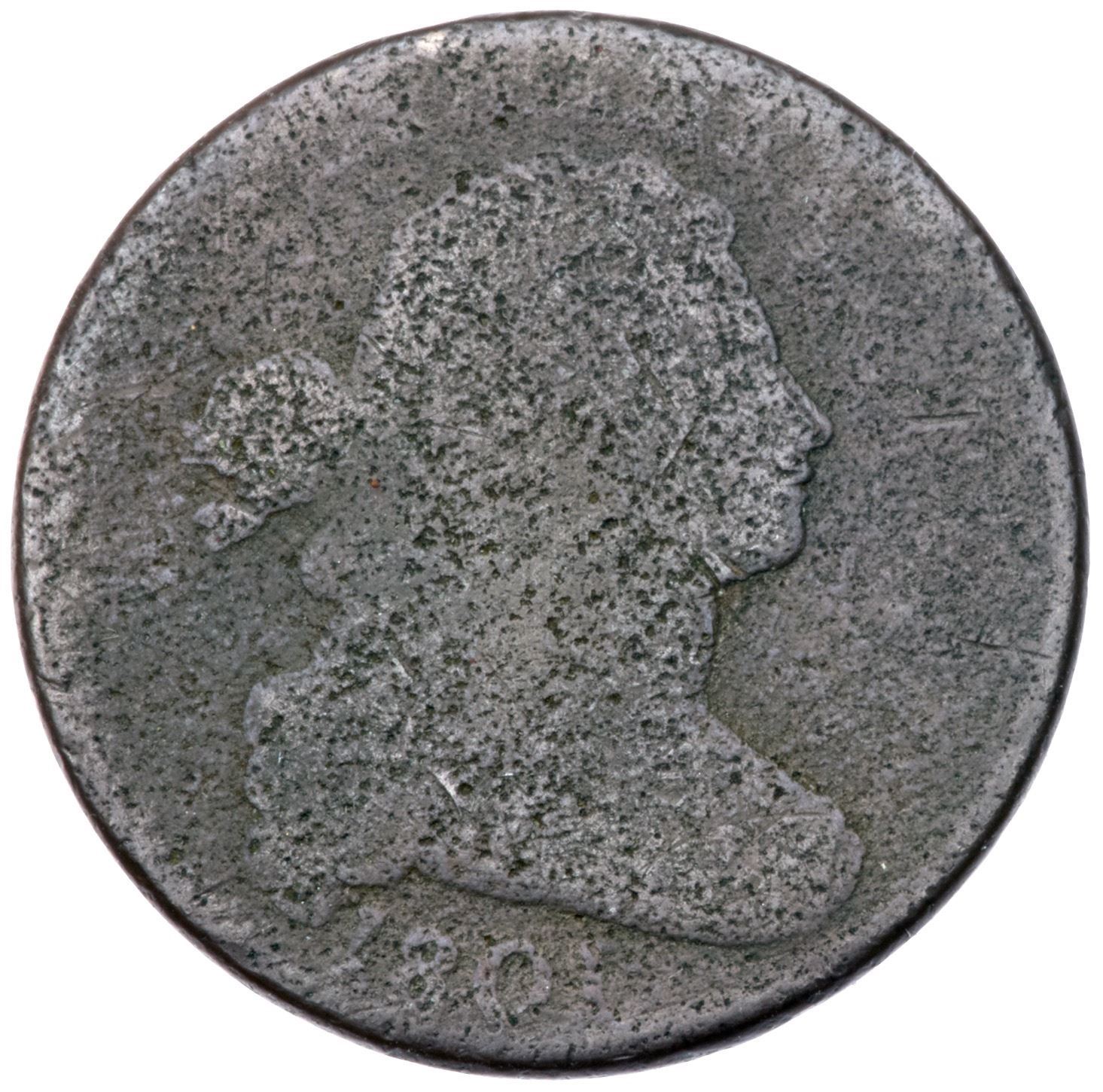 1801 S-219 R-2 3 Error Rev AG3Deep olive brown on porous surfaces with a couple old scratches on either side. Despite that, the devices are outlined and all three errors on the reverse are visible. Strong date. E-MDS. Certificate Number: