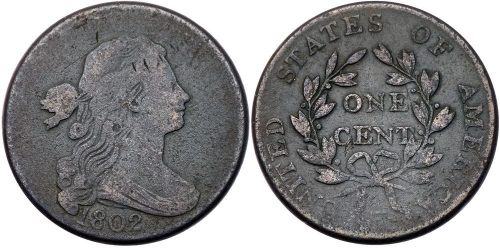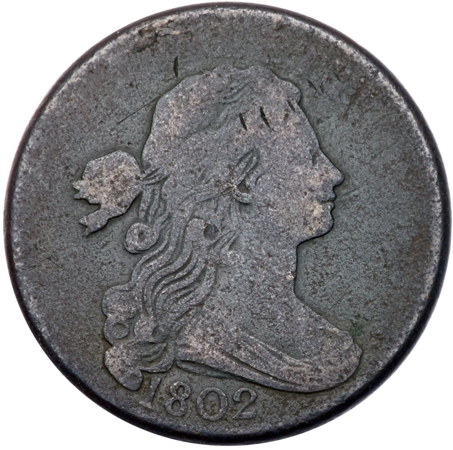 1802 S-228 R-2 VG7A few points sharper but light granularity covers the surfaces. There are a handful of nicks on and above the portrait, and a small scratch right of Y in LIBERTY. Strong date. EDS. Certificate Number: