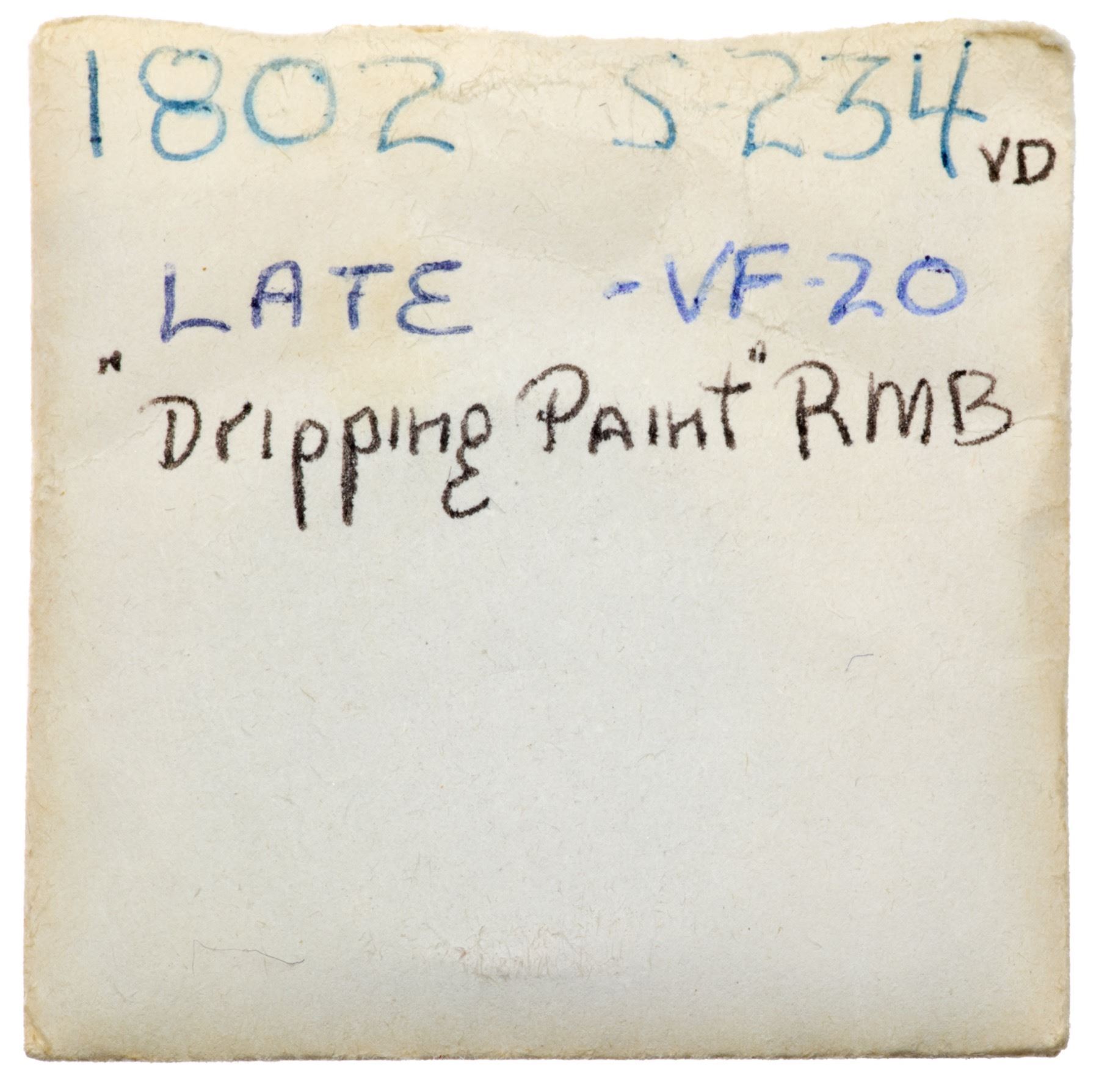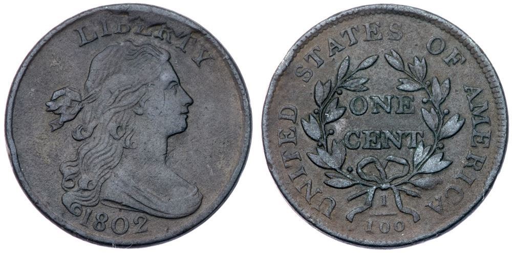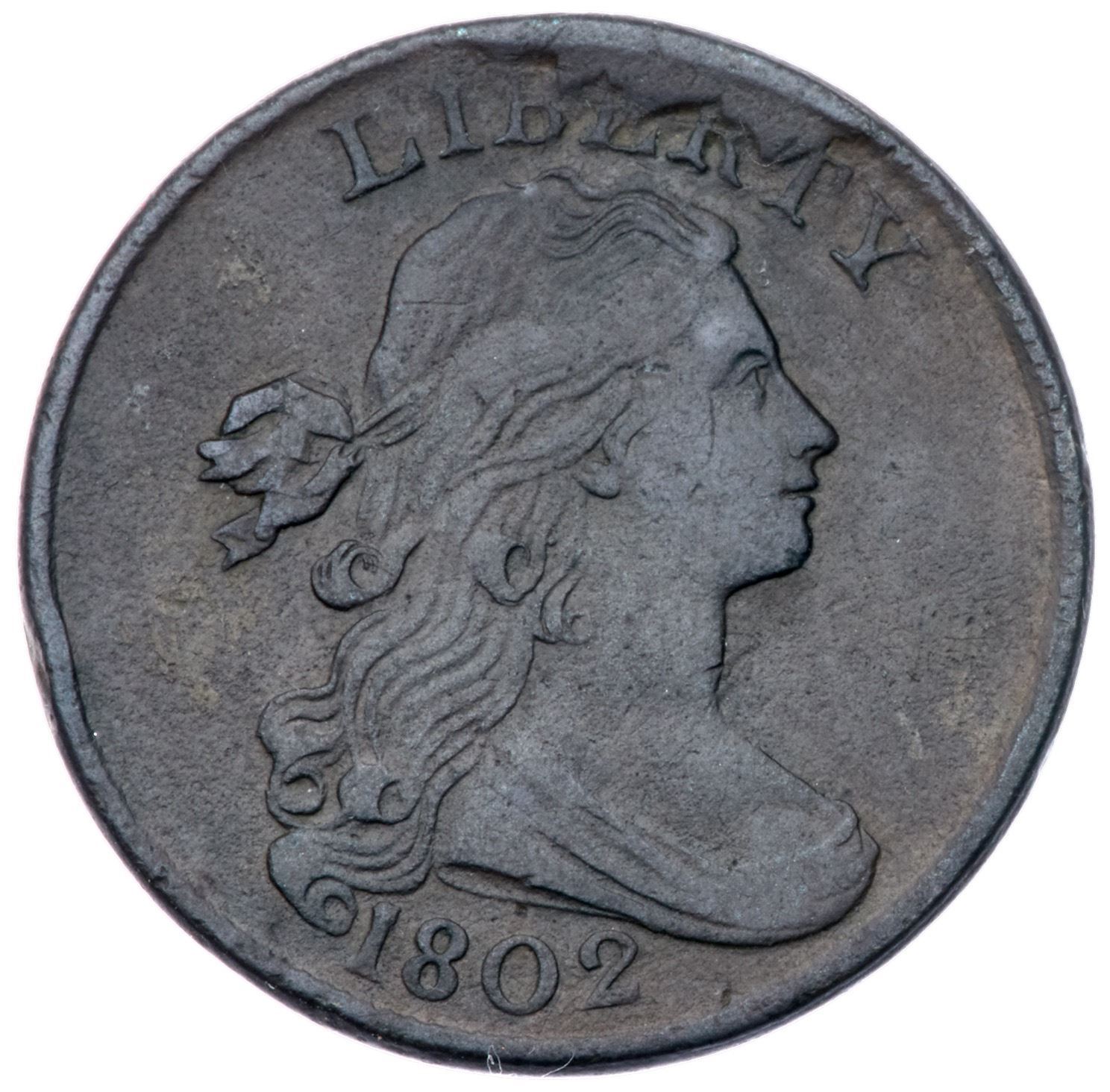 1802 S-234 R-3 F12+VF30 but fine granularity covers the surfaces and there are minor rim bruises, mostly on the reverse with one on the obverse. Free of notable marks otherwise.LDS, Breen state VII with the large obverse rim break over BERT in LIBERTY.Certificate Number: