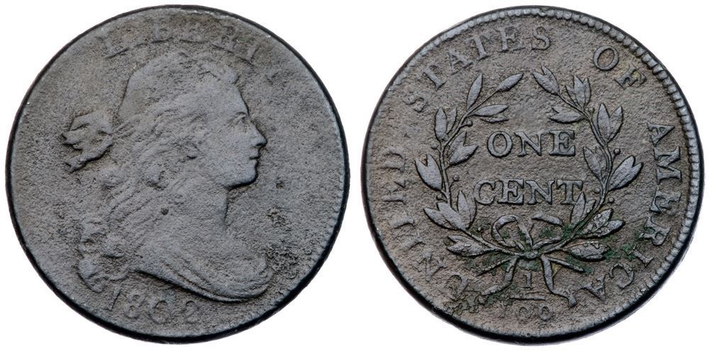 1802 S-238 R-4 G6VF20 but corroded with granular surfaces and traces of old verdigris on the lower reverse. Rather glossy olive brown with light steel on the high points. Free of notable marks. E-MDS.Certificate Number: