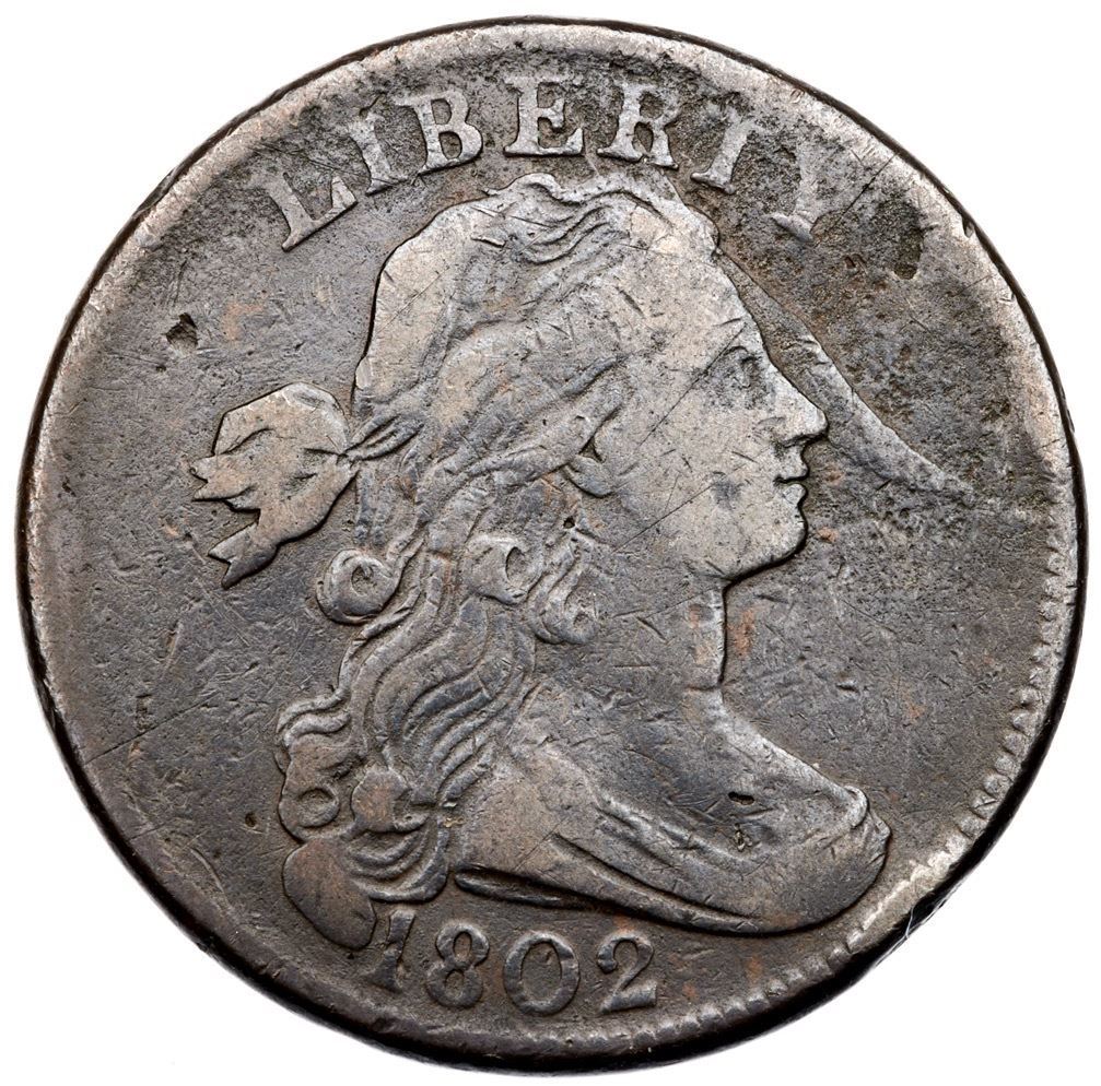 Slightly glossy steel brown. Several points sharper but roughness covers the field before the face and LIBERTY. There is a rim bruise at the bust and an obvious dig in the field behind the head. LDS, Breen state V, with a raised cud break extending into the field from the nose. Ex Steve Chappen 11/2013