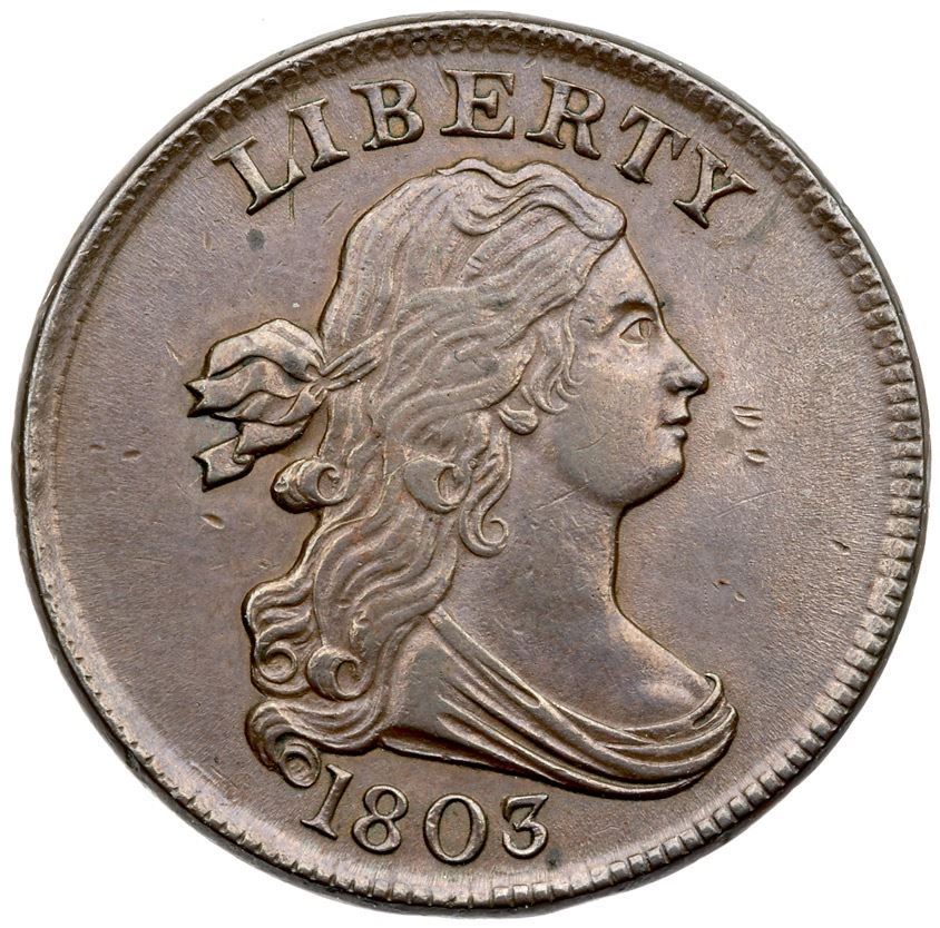 Slightly sharper with three tiny ticks in the field before the mouth. Very lightly cleaned. Frosty medium steel brown. EDS, Manley state 1.0. Sharp and attractive. Ex Executive Coin-Raymond Gatzke, Goldbergs 6/2021:19 (lot ticket included)
