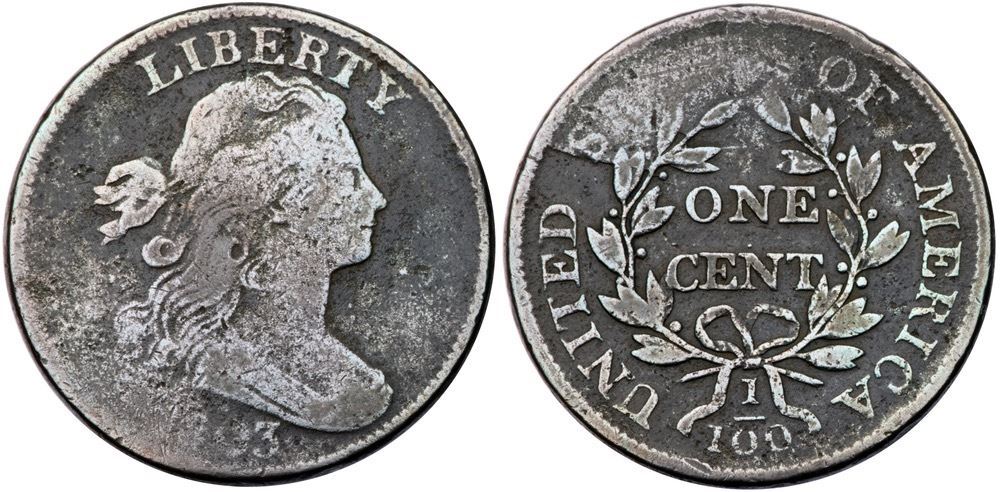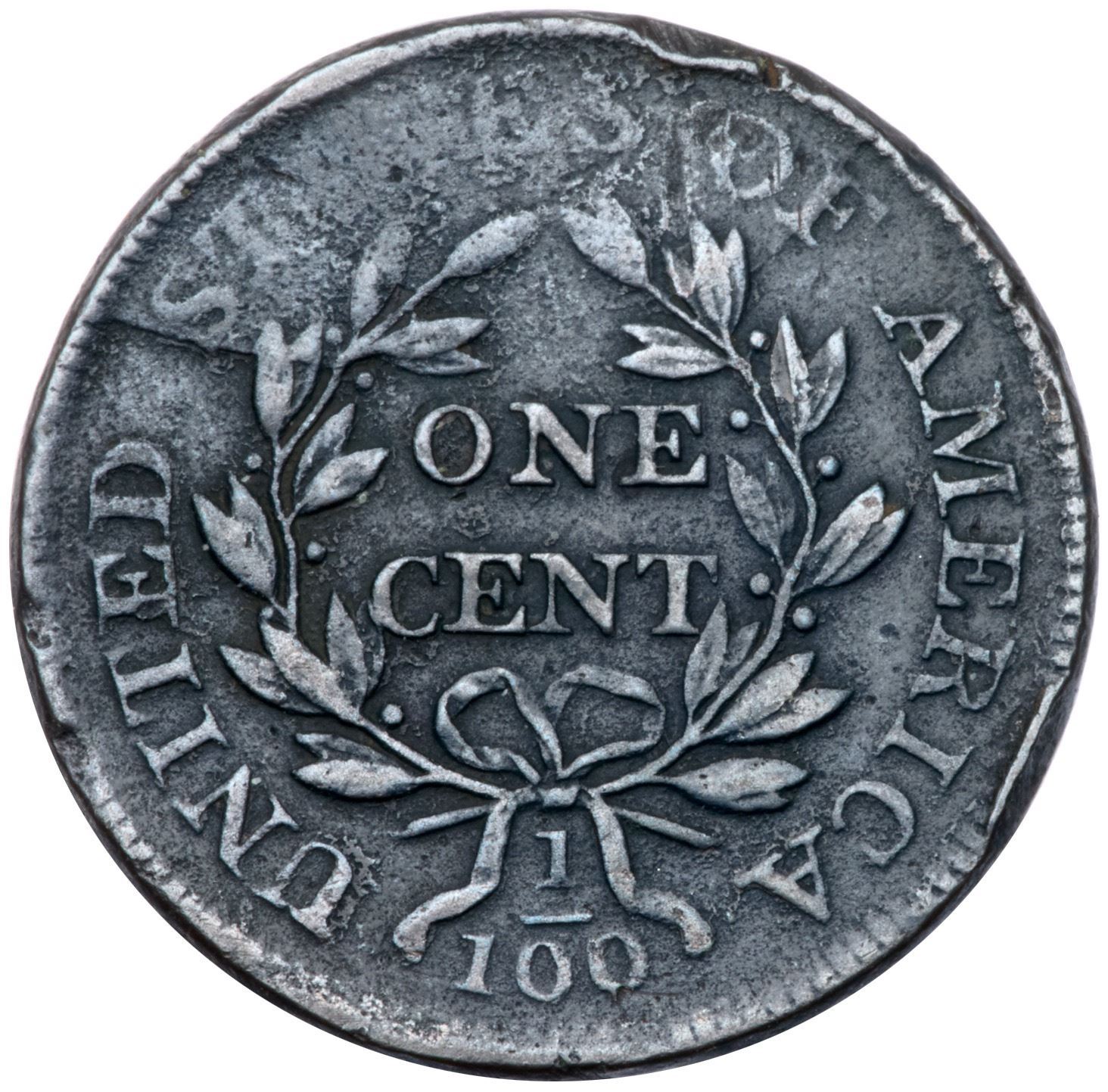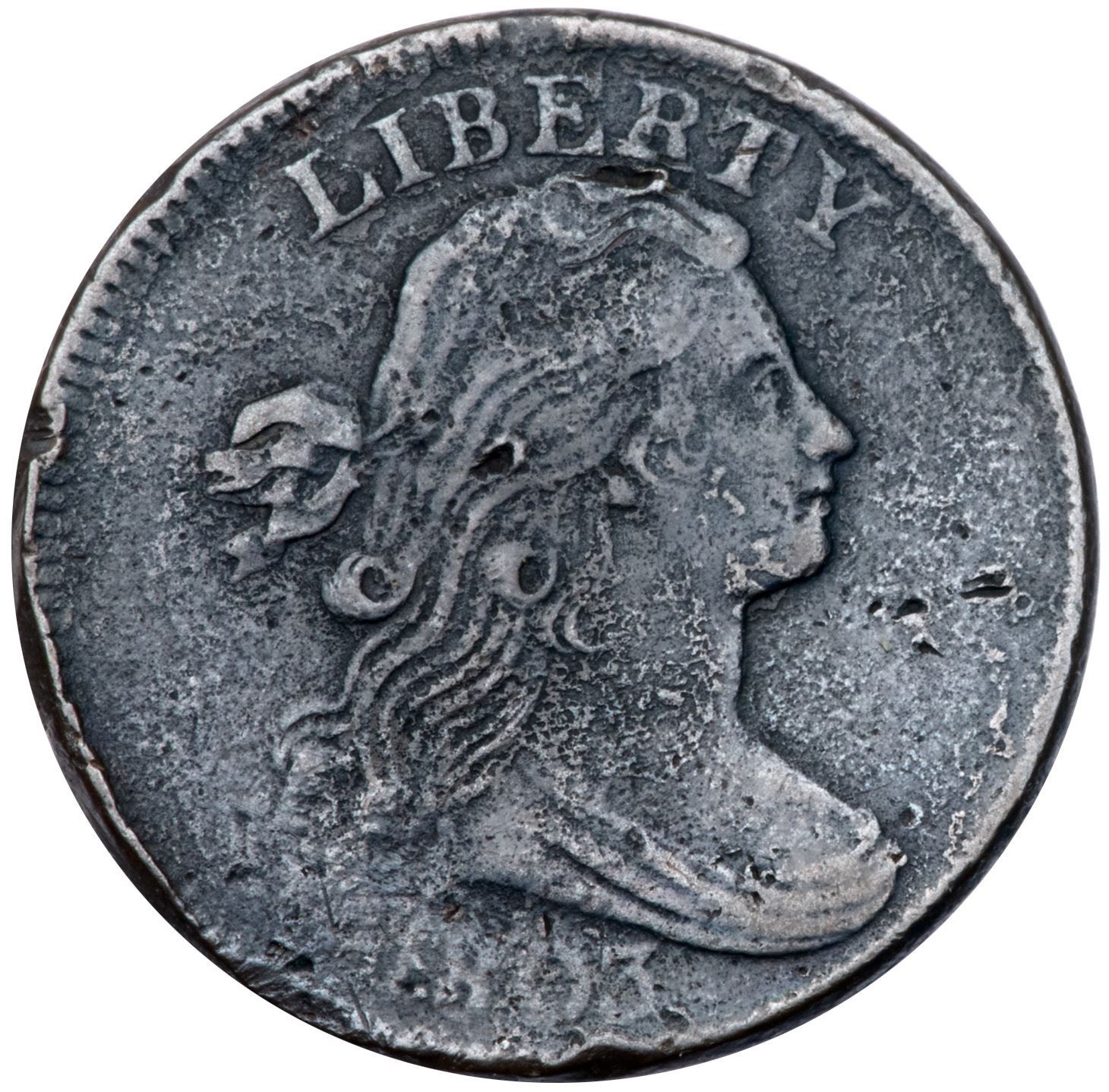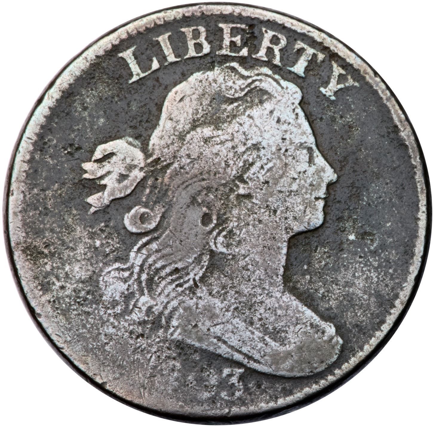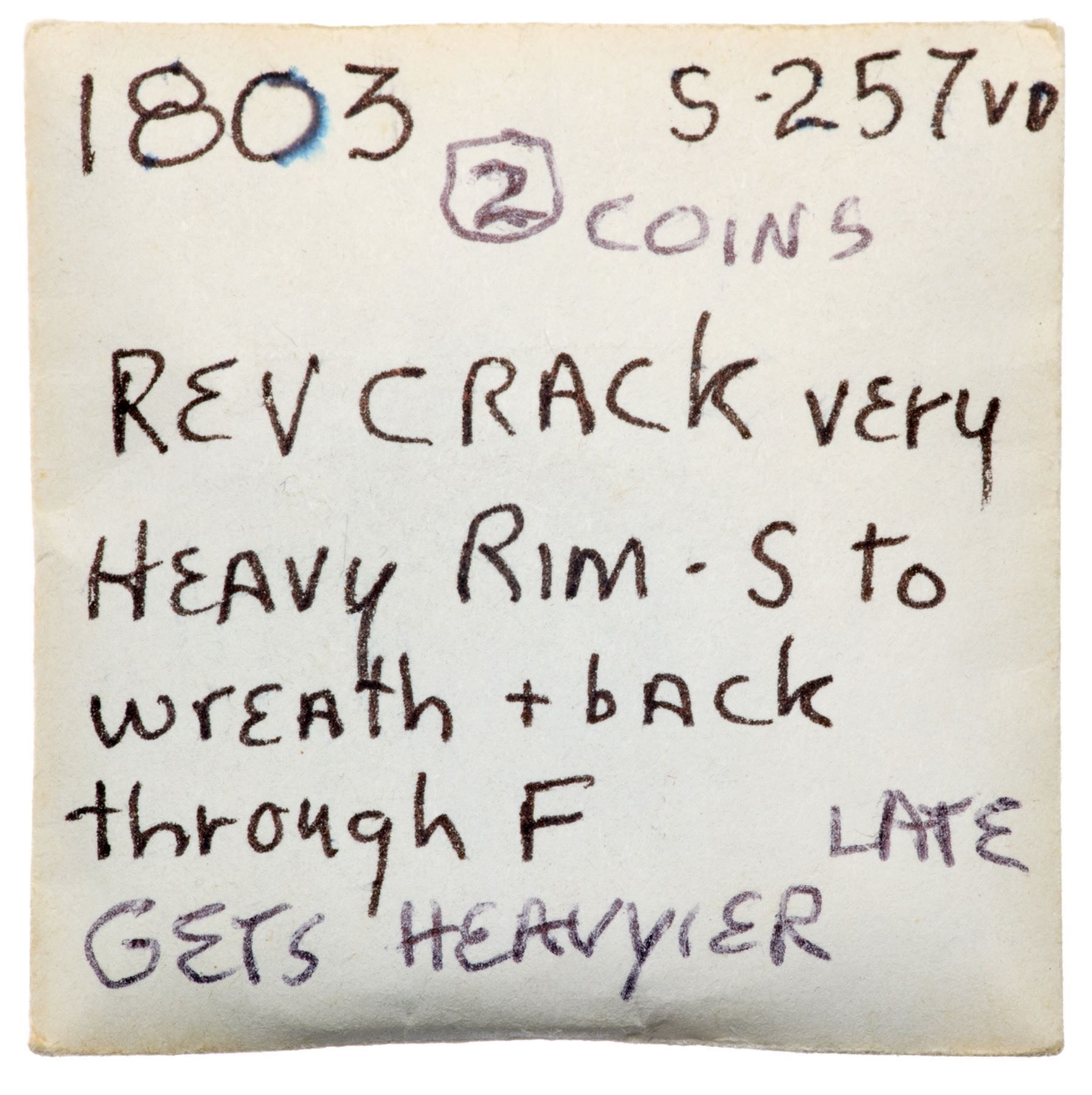 1803 S-257 R-2 G4G6 but slightly rough surface, smoother on the high points. Glossy medium to dark browns. LDS, Breen state V with STATES nearly obliterated. The remaining legends are full and the date is still readable in hand.Certificate Number: