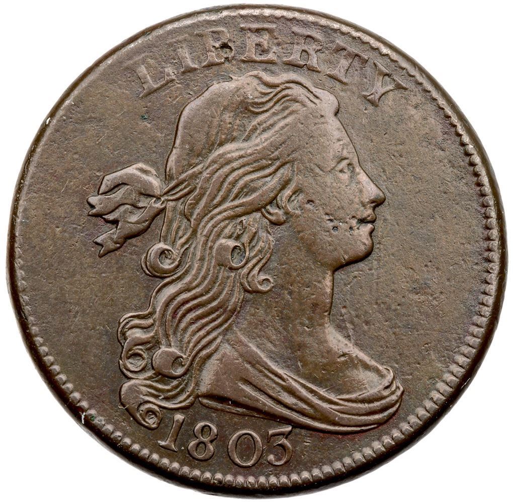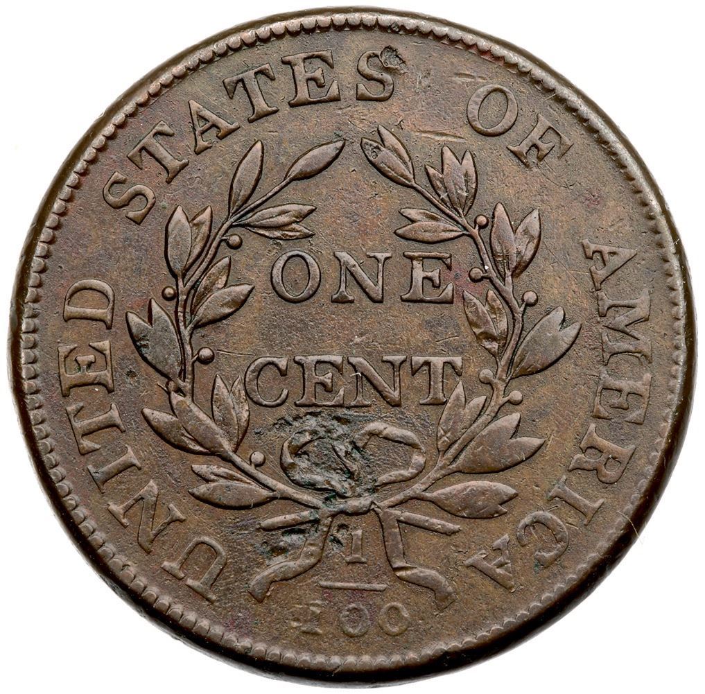 Sharpness VF30 but there is a small punch mark on the B in LIBERTY, a few small pits on the cheek, a small dig on the top of the second S in STATES, and a patch of pitting on the wreath ribbon. Specks of dark green verdigris show in the pitted area. Otherwise smooth with minor marks. Glossy light olive. MDS, Breen state II. Ex Fred Borcherdt-Walter Reed-Colonel Steven K. Ellsworth-2016 EAC Sale, lot 283 (lot ticket included)