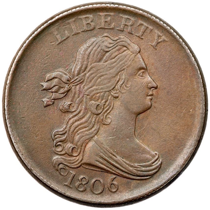 Frosty light steel brown. Smooth and free of marks, just lightly worn on the devices. MDS with flowlined fields and die clashmarks on the obverse. Struck with the reverse rotated 30 degrees clockwise relative to the normal head-to-foot die orientation. An attractive example, close to AU50.