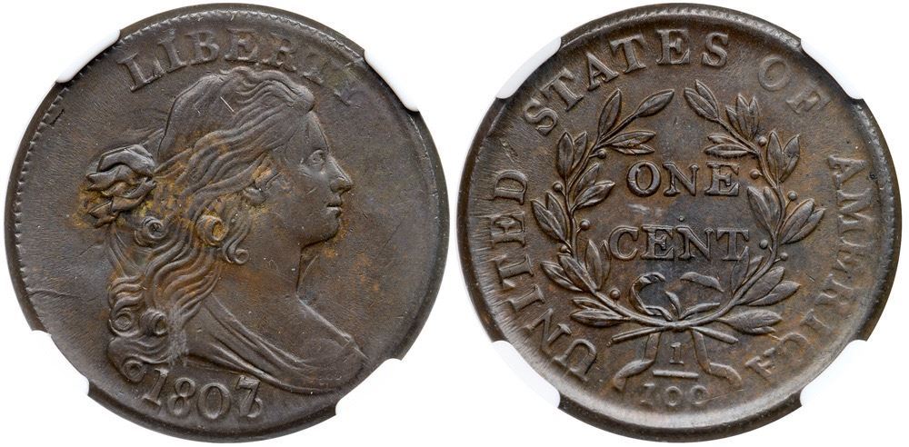 Frosty chocolate and medium olive brown with specks of golden tan sprinkled over the obverse. Traces of light golden brown faded down from mint color show in protected areas around the wreath and satiny mint luster covers the fields. Looks mint state but there is a trace of friction on the highpoints. The only contact marks of any significance are a nick on the forehead and a very light scratch left of the eye. LDS, Breen state IV, with clashmarks, swelling at the lower curls, and a narrow rim cud at STA (difficult to see the cud in the holder). Our grade is AU55. A nice example of this popular "Redbook" variety. The attribution is noted on the NGC label. 451739-001