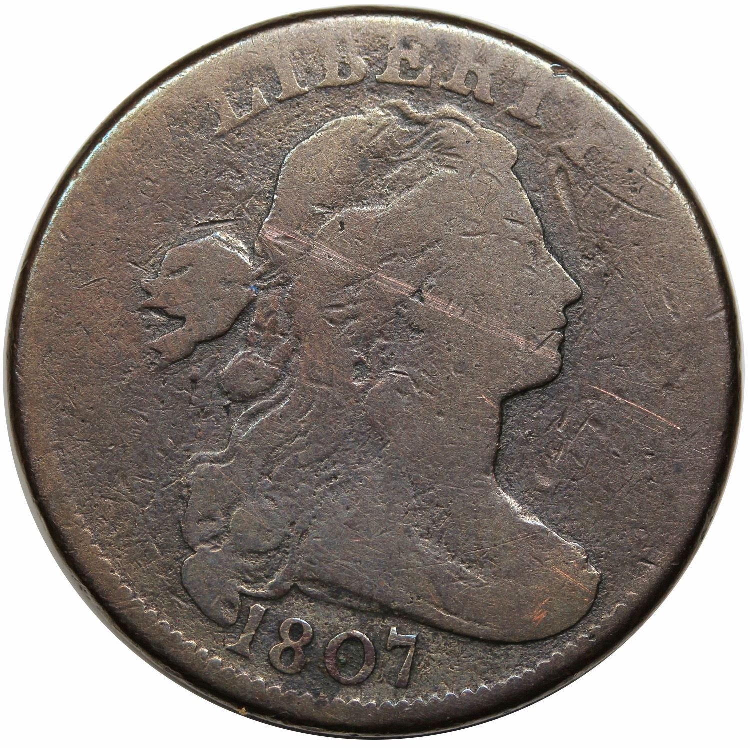 1807 Draped Bust Large Cent, Small Fraction, S-274, R2, VG detail, scratched.