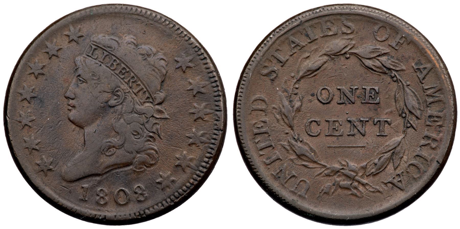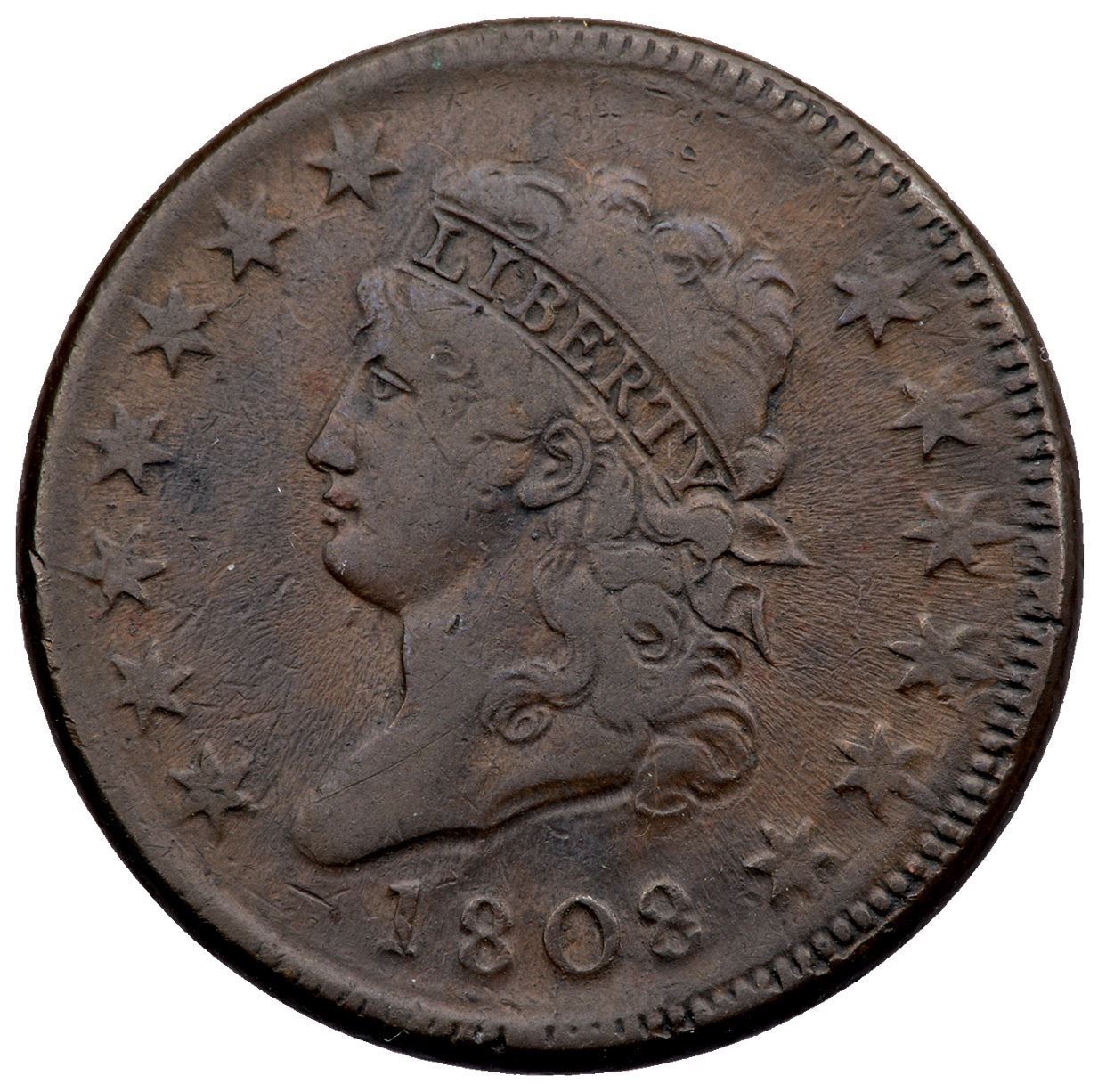 1808 S-278 R-3 F12Semi-glossy chocolate and olive browns with a dark spot right of star 4. Only the most trivial of marks consistent with the grade, including a tick on the nose bridge and a pin scratch in the upper hair. Smooth surfaces. LDS.Certificate Number: Pedigree: Ex; Anthony Denny 1987 - William Schwartz