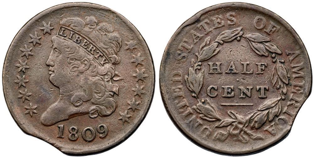 Very attractive glossy medium brown and light chocolate. Smooth and void of notable marks. There is a curved planchet clip below the bust that just touches the tops of RI in AMERICA. A nice example of a relatively simple type of mint error.