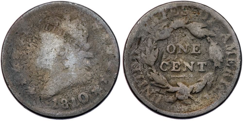1810/09 S-281 R-1 AG3Dark olive brown surfaces with a shallow corrosion spot after STATES. Scattered marks consistent with the grade, nicks at the first S in STATES and over C in CENT the most notable. Readable legends, nice bold date with clear overdate feature. LDS.Certificate Number: